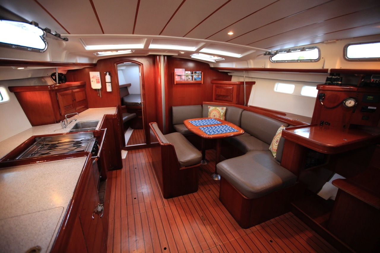 | Outside | Außendusche, Badeplattform, Biminitop, Bootshaken, Cockpitlautsprecher, Cockpitleuchte, Cockpitpolster, Cockpittisch, Deckbürste, elektr. Ankerwinsch, Fender, Festmacherleinen, Grill, Solaranlage |
