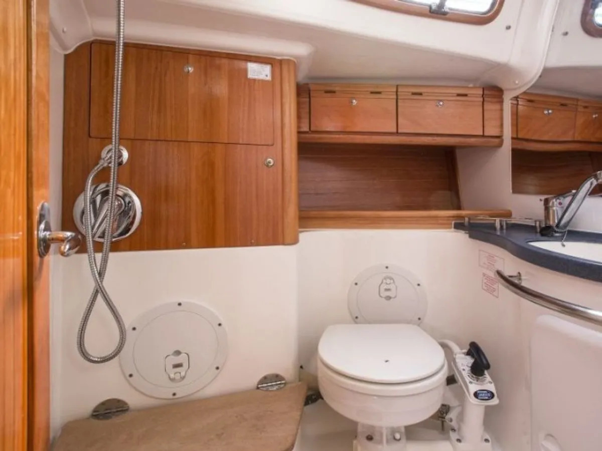 | Outside | 12 V-Anschluss, 220 V-Landanschluss, Badeleiter, Cockpitpolster, elektr. Ankerwinsch, Festmacherleinen, Sprayhood, Teak im Cockpit, Winschen |