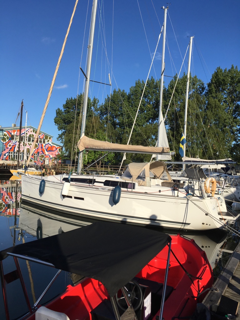 | Outside | 220 V-Landanschluss, Badeplattform, Cockpitdusche, Cockpittisch, elektr. Ankerwinsch, Fender, Festmacherleinen, Selbstholende Winschen, Sprayhood, Teak im Cockpit |
