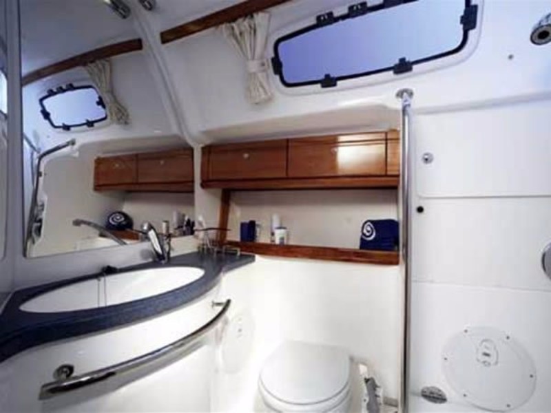 | Outside | 220 V-Landanschluss, Badeleiter, elektr. Ankerwinsch, Faltpropeller, Festmacherleinen, Sprayhood |