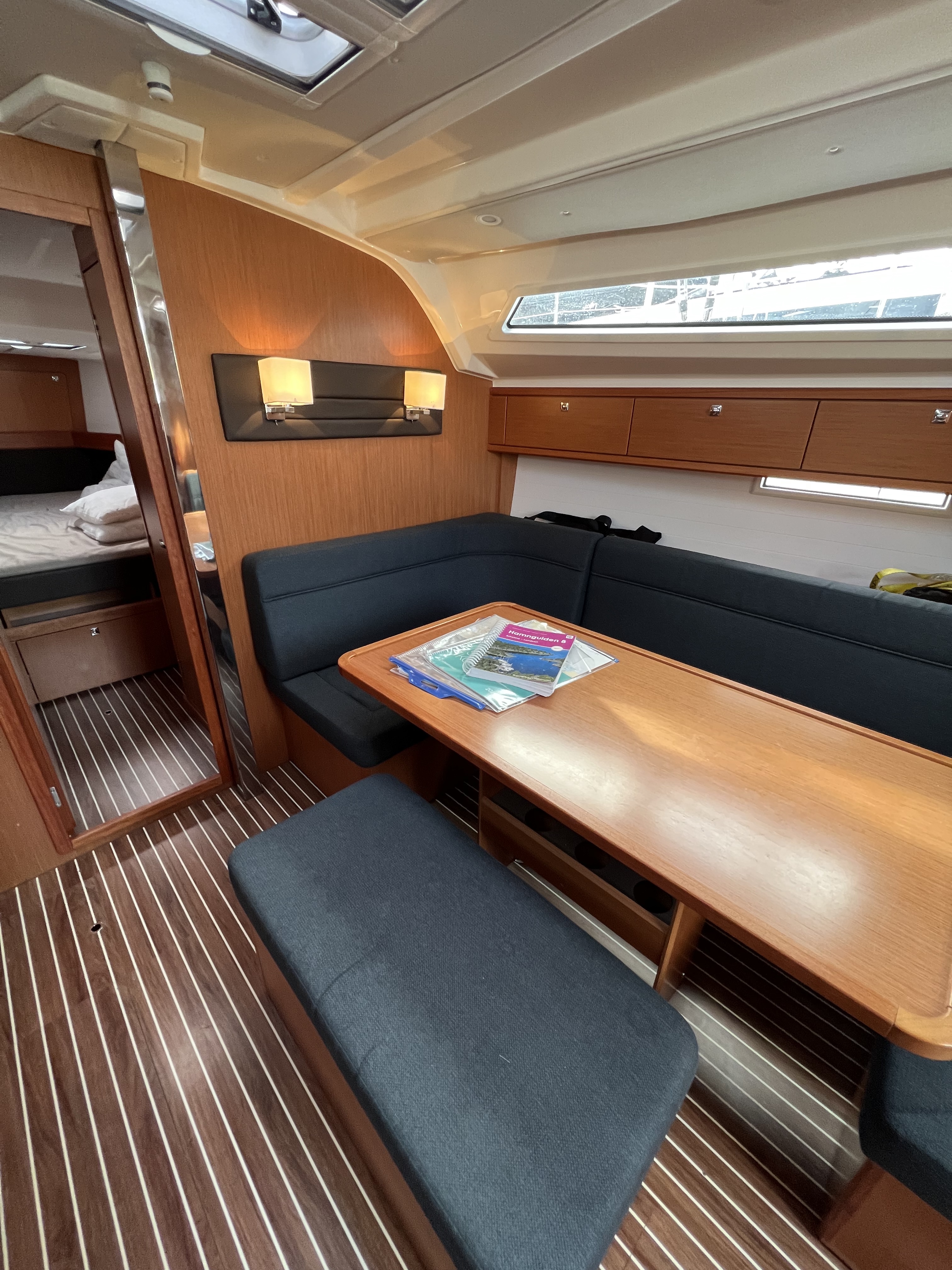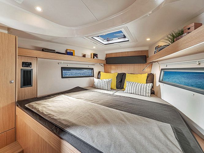 | Outside | 220 V-Landanschluss, Anker mit Kette, Badeplattform, Bootshaken, Cockpitdusche, Cockpittisch, elektr. Ankerwinsch, Fender, Festmacherleinen, Heckanker, Sprayhood |