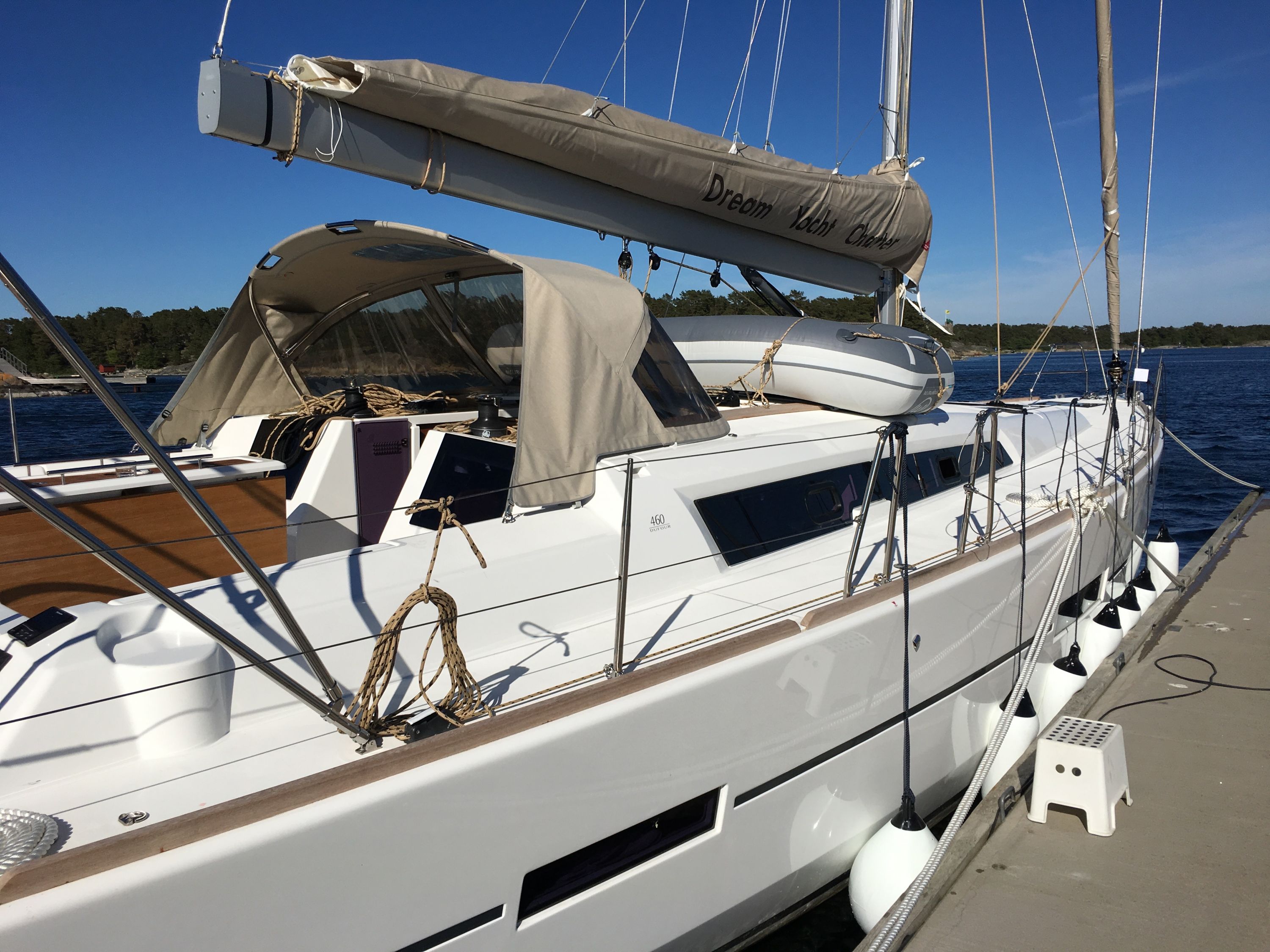 | Outside | 220 V-Landanschluss, Badeleiter, Biminitop, Cockpitdusche, Cockpitlautsprecher, Cockpitpolster, Cockpittisch, elektr. Ankerwinsch, Selbstholende Winschen, Sprayhood |