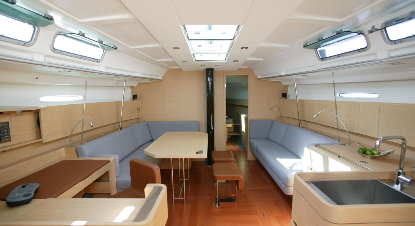 | Outside | 12 V-Anschluss, 220 V-Landanschluss, Badeleiter, Cockpitpolster, elektr. Ankerwinsch, elektr. Winsch, Festmacherleinen, Sprayhood, Teak im Cockpit, Winschen |