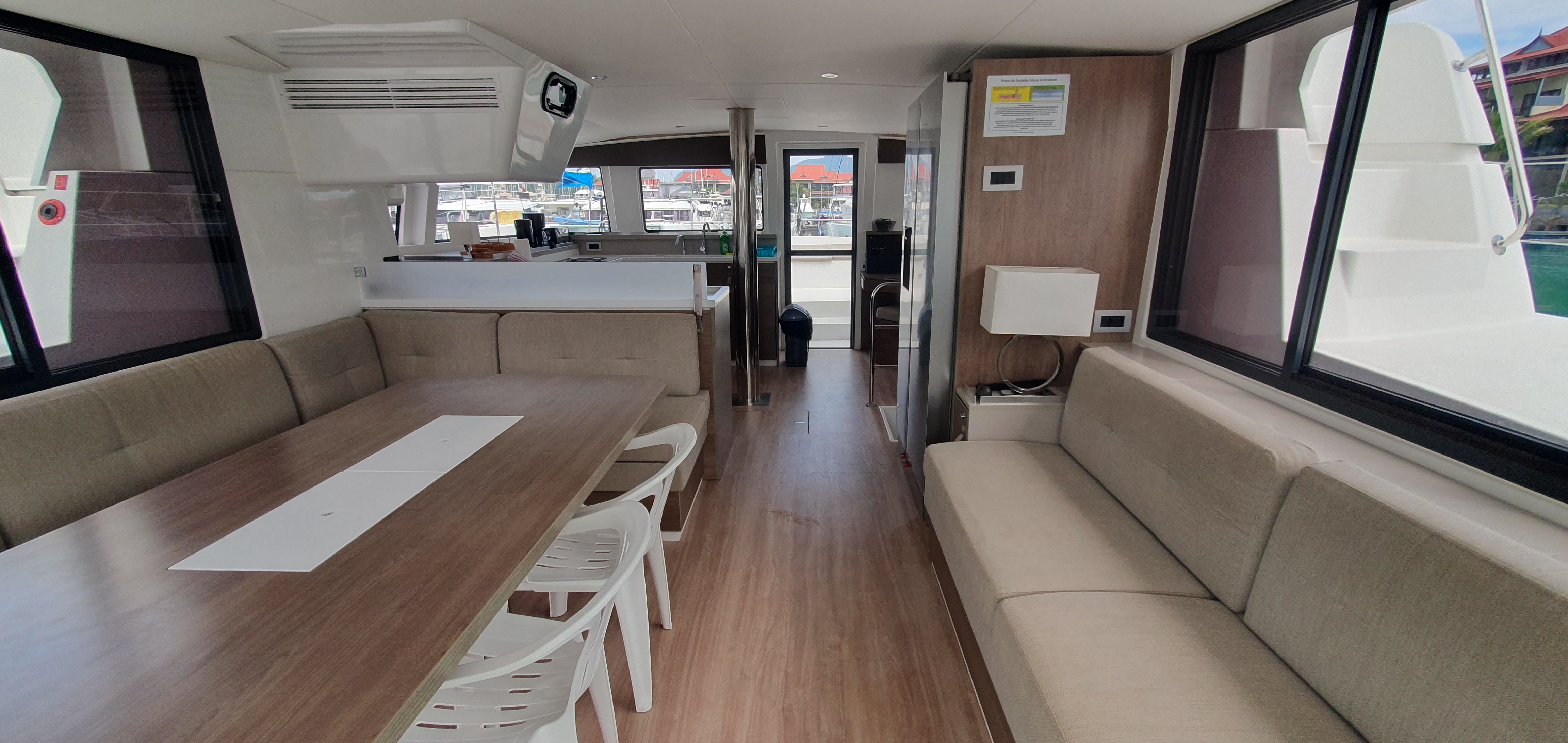 | Inside | Generator, Inverter 12V/220V, Klimaanlage (ohne Landstrombedarf), Kühlschrank, Lautsprecher im Salon, USB Steckdose, Ventilatoren in Kabinen, Watermaker, WC (elektr.) |