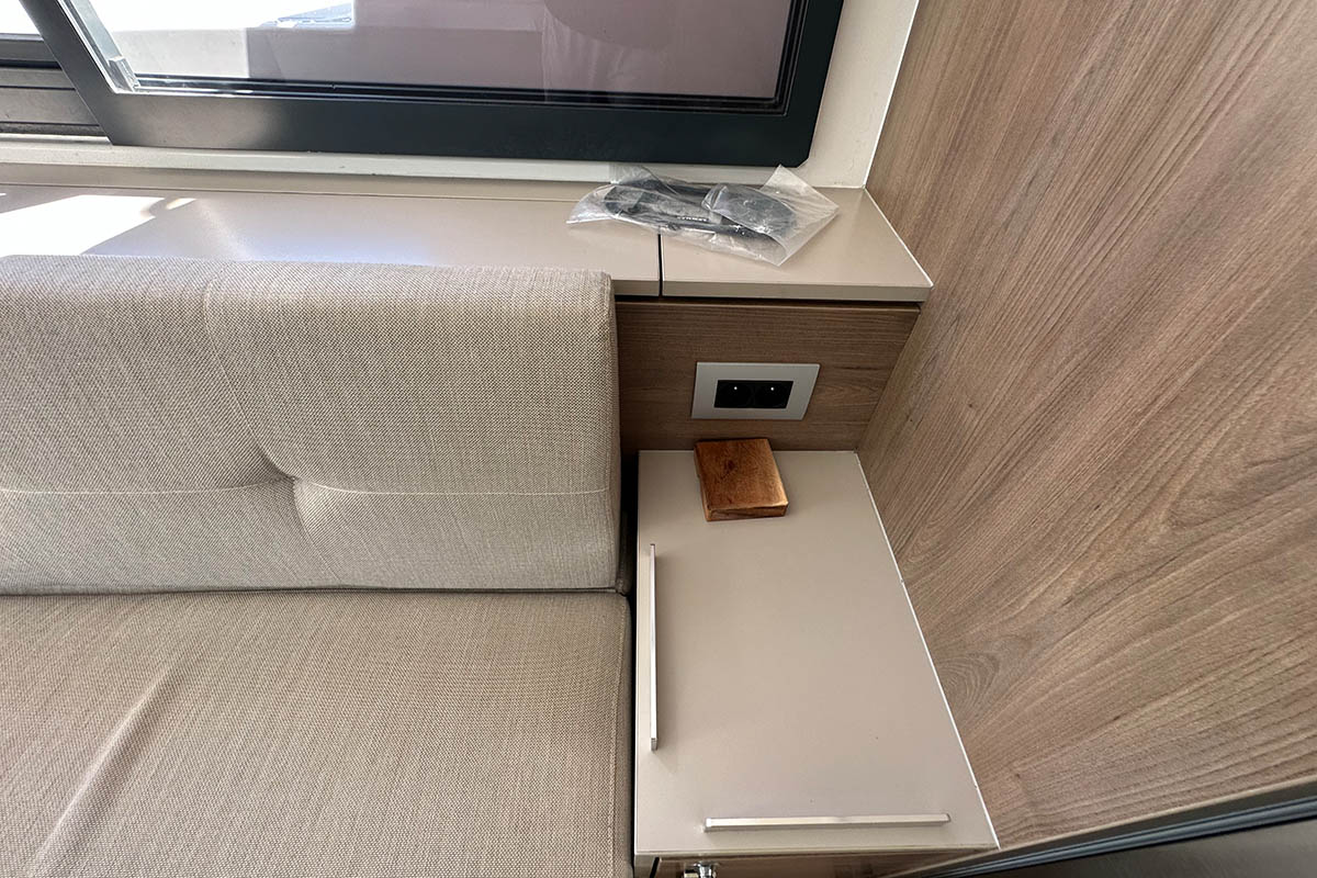 | Inside | Generator, Inverter 12V/220V, Klimaanlage (ohne Landstrombedarf), Kühlschrank, Lautsprecher im Salon, USB Steckdose, Ventilatoren in Kabinen, Watermaker, WC (elektr.) |
