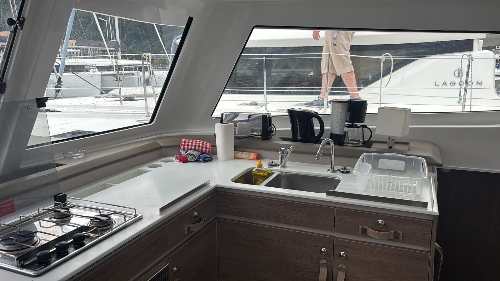 | Inside | Backofen, Gefrierschrank, Generator, Hi-Fi System, Inverter 12V/220V, Klimaanlage (ohne Landstrombedarf), Kühlschrank, Ladegerät, Moskitonetze, Pantryausstattung, Ventilator, Watermaker, WC (elektr.) |