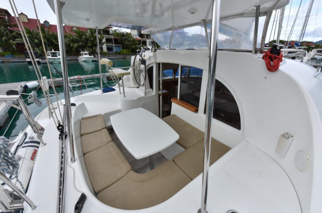 | Outside | Biminitop, Cockpitdusche, Cockpitlautsprecher, Cockpitpolster, Cockpittisch mit Eisbox, Davits, Schnorchelausrüstung, Teak im Cockpit |