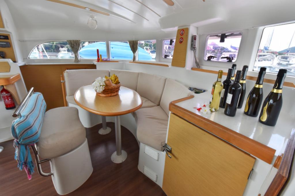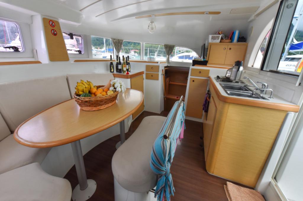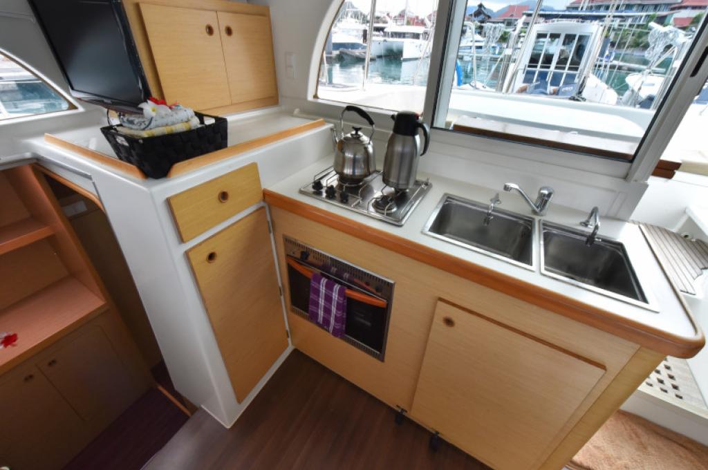 | Inside | Frischwasserpumpe, Kühlschrank, Ladegerät, Lautsprecher im Salon, LCD Fernseher + DVD, Pantryausstattung, Radio mit CD und MP3, Ventilator, Ventilatoren in Kabinen |