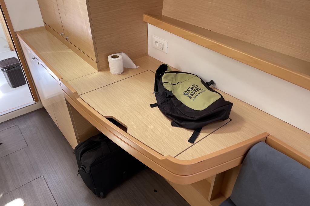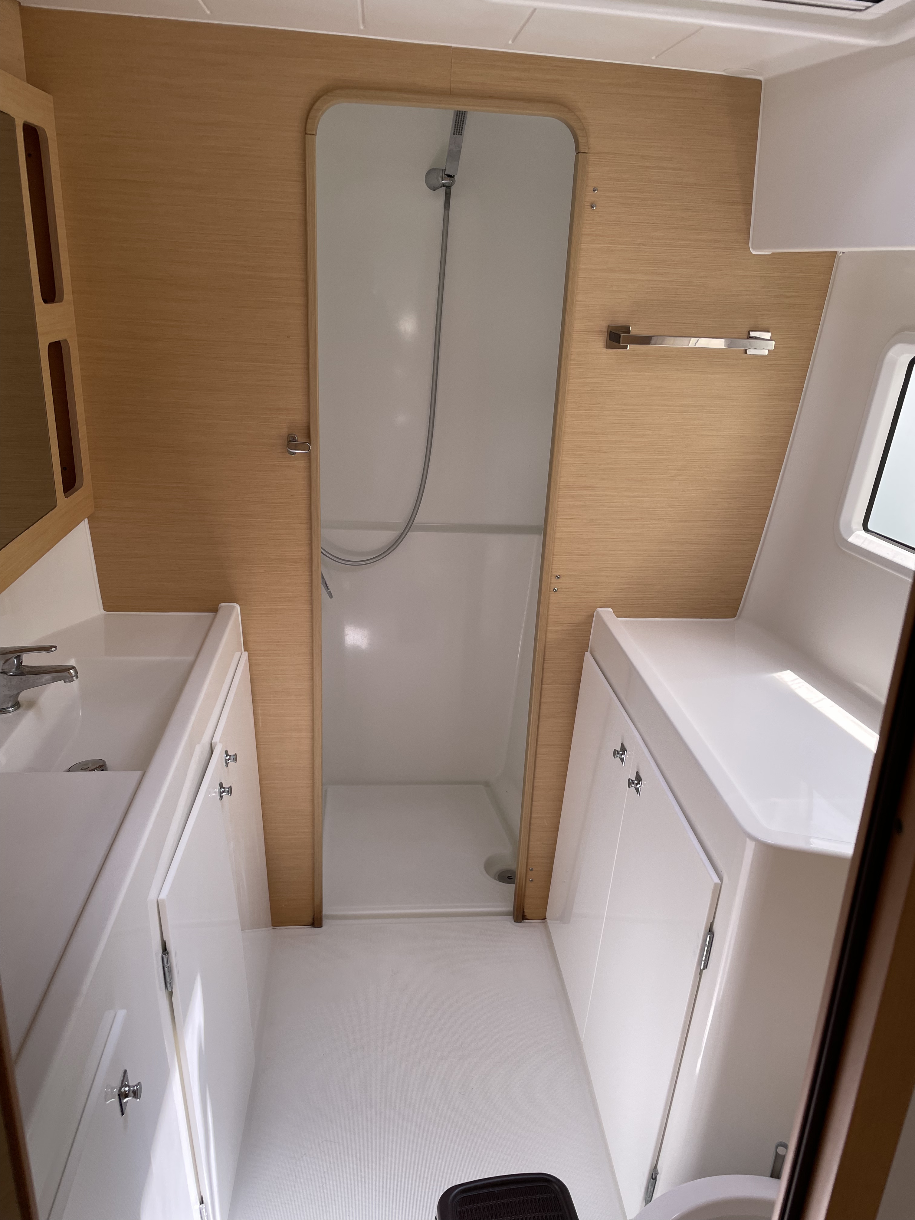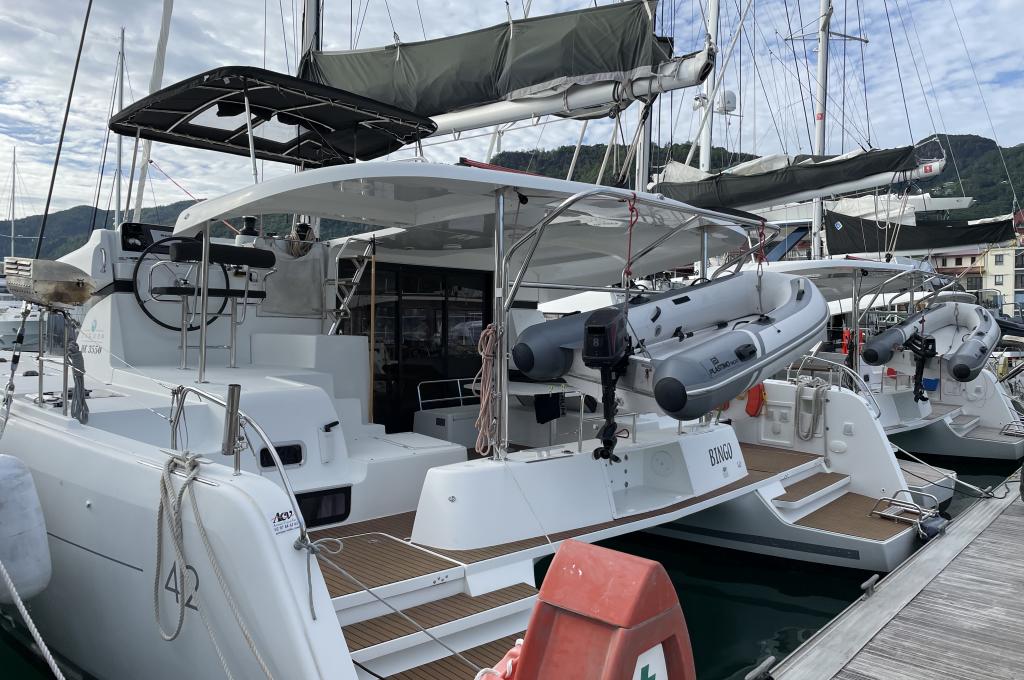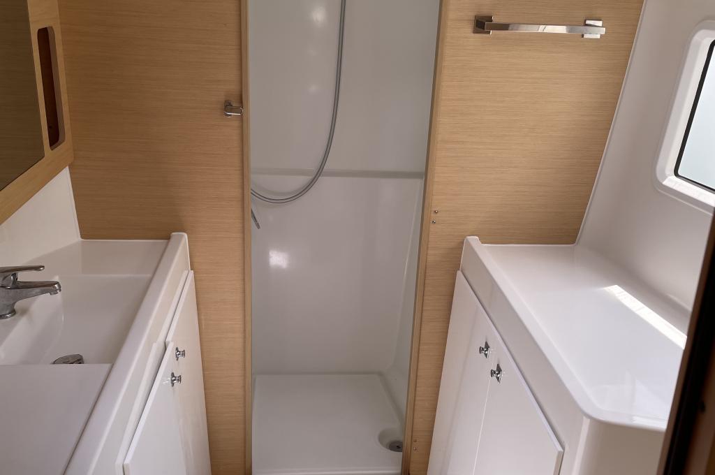 | Outside | 12 V-Anschluss, 220 V-Landanschluss, Badeleiter, Biminitop, Cockpitdusche, Cockpitlautsprecher, Cockpitpolster, Cockpittisch, Davits, elektr. Ankerwinsch, elektr. Winsch, Festmacherleinen, Grill, Selbstholende Winschen, Solaranlage, Sonnendeck, Teak im Cockpit |