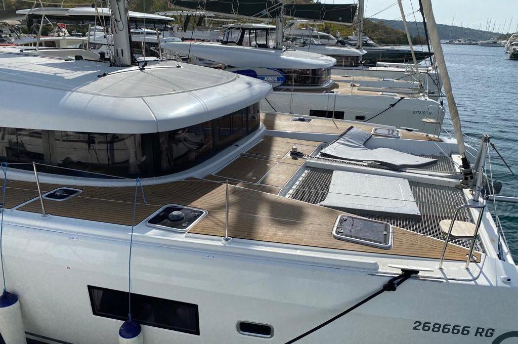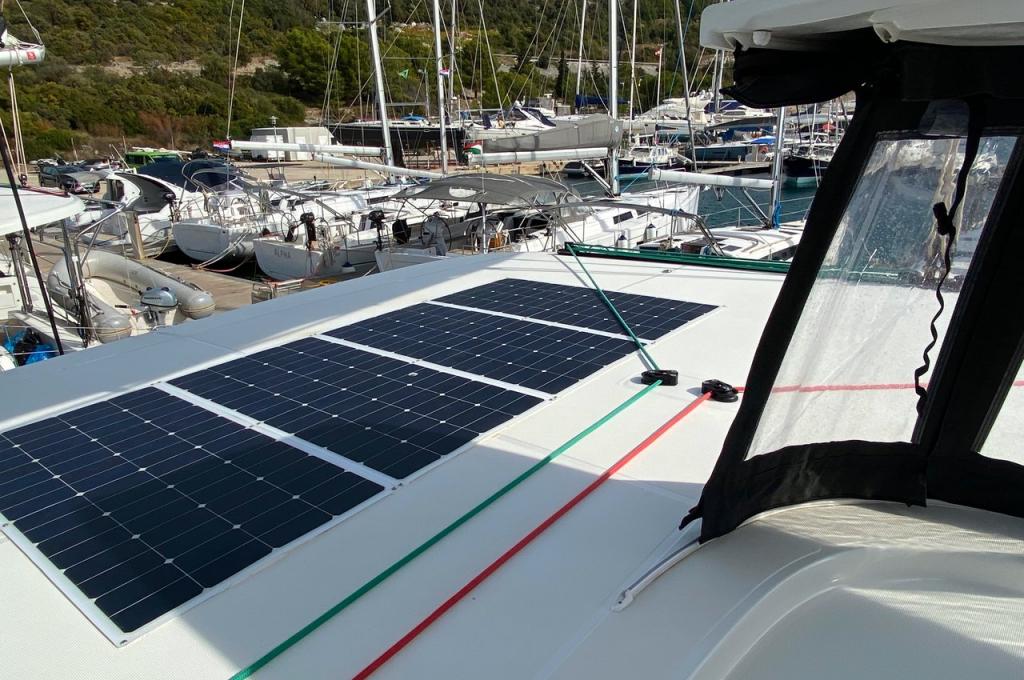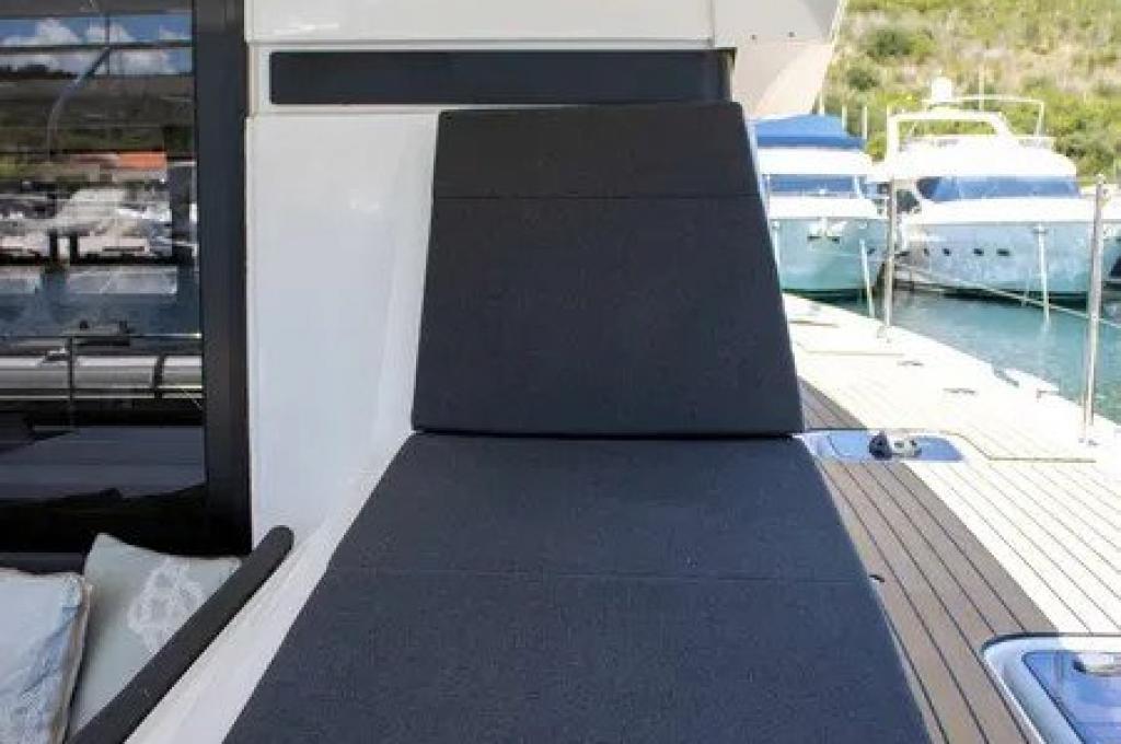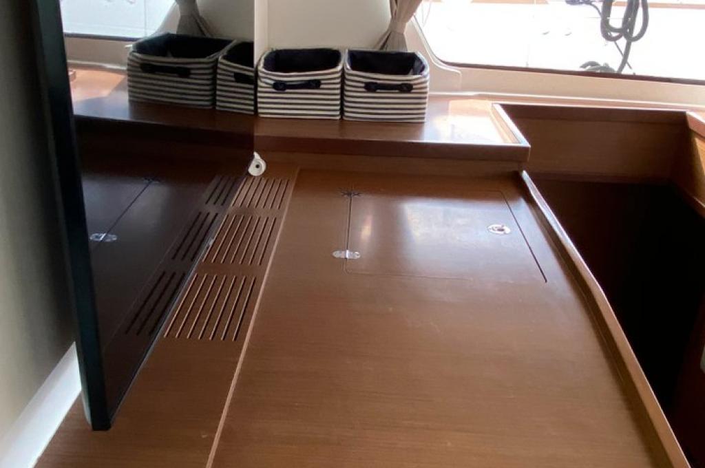 | Outside | Biminitop, Cockpitdusche, Cockpitpolster, elektr. Ankerwinsch, elektr. Winsch, Fender, Festmacherleinen, Solaranlage, Sonnendeck, Teakdeck |