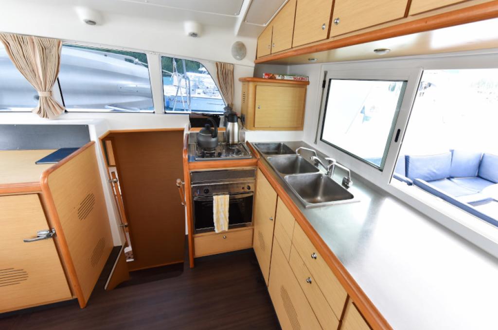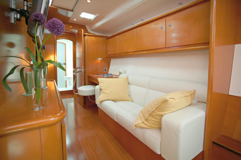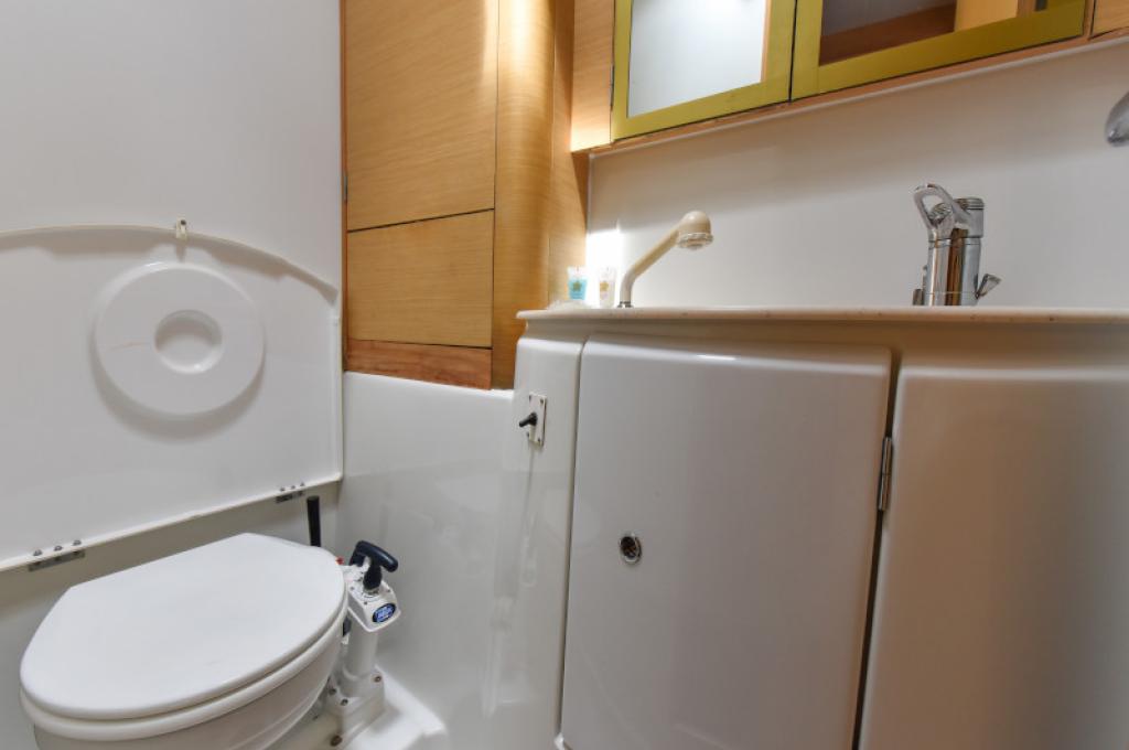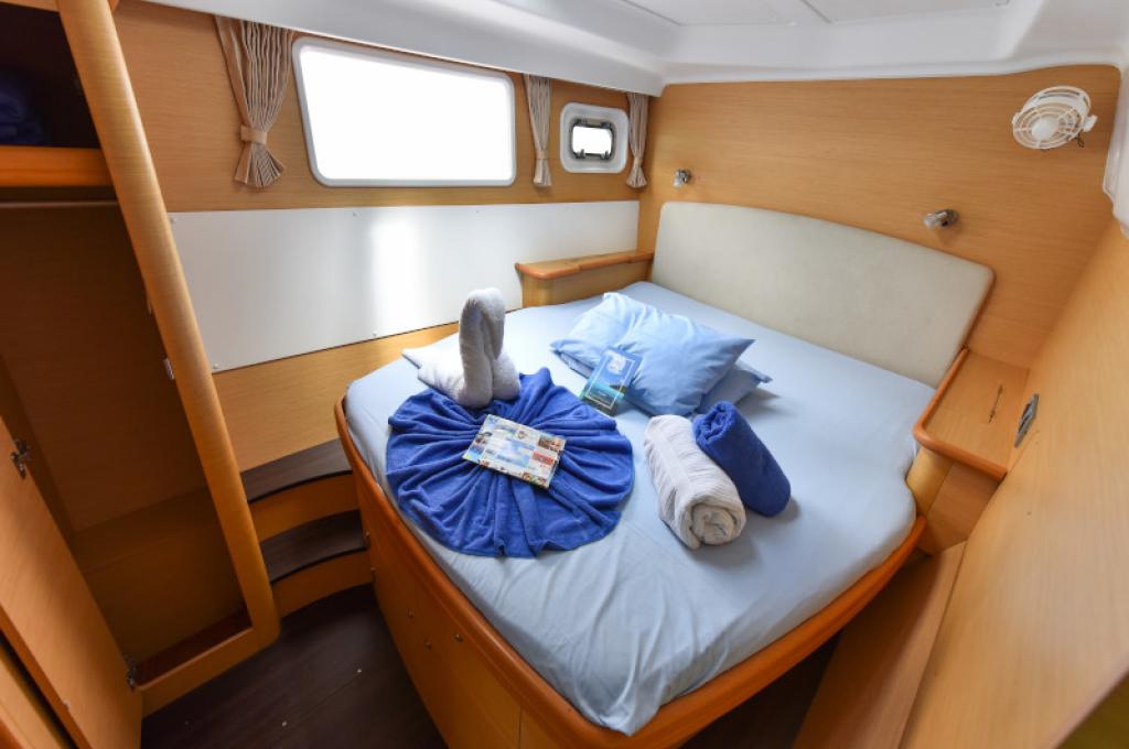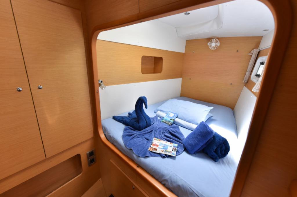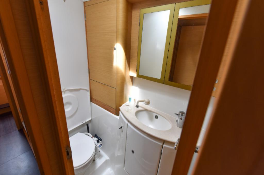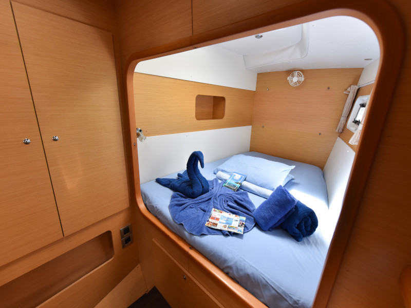 | Inside | Frischwasserpumpe, Kühlschrank, Ladegerät, Lautsprecher im Salon, Pantryausstattung, Radio mit CD und MP3, Ventilator, Ventilatoren in Kabinen |