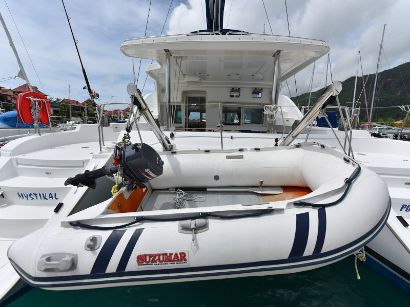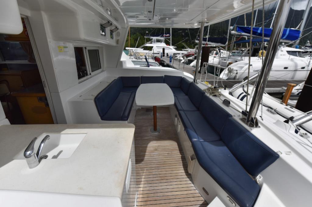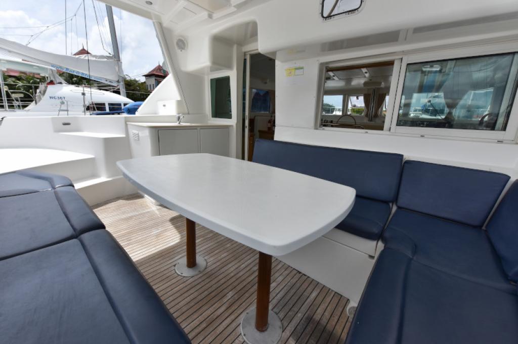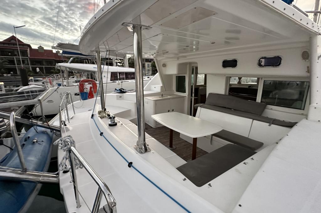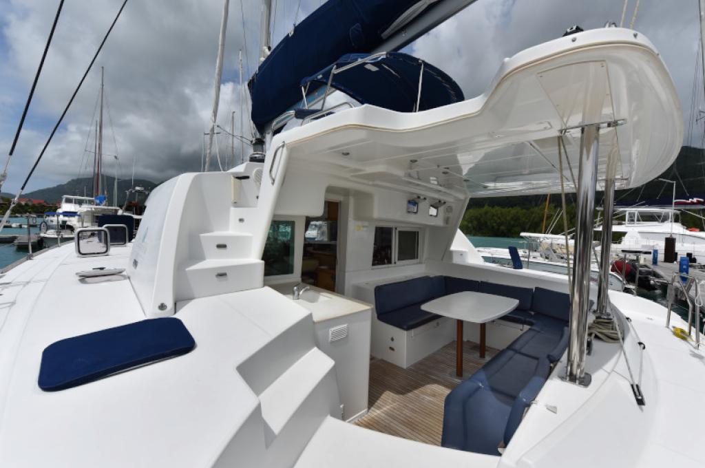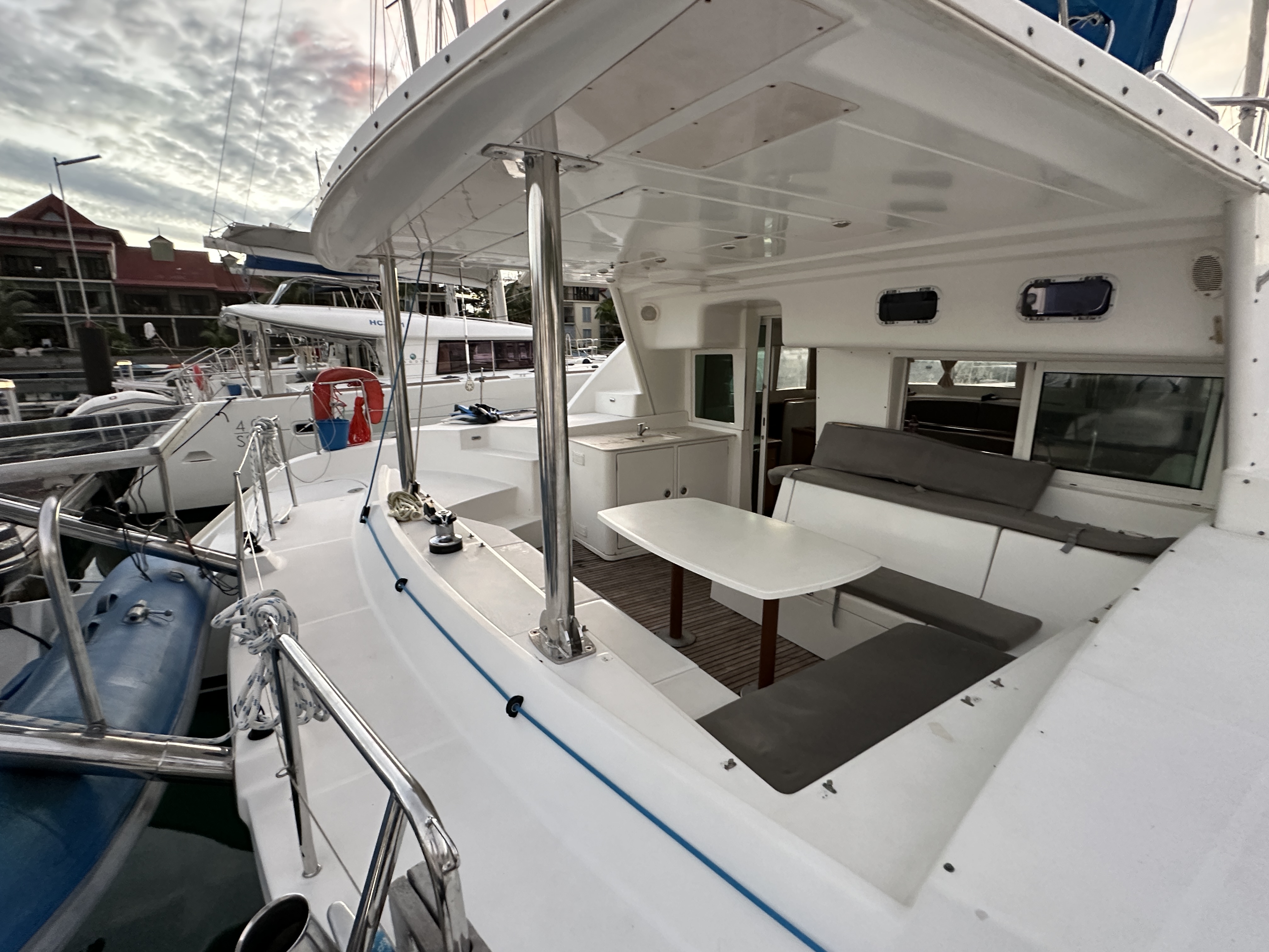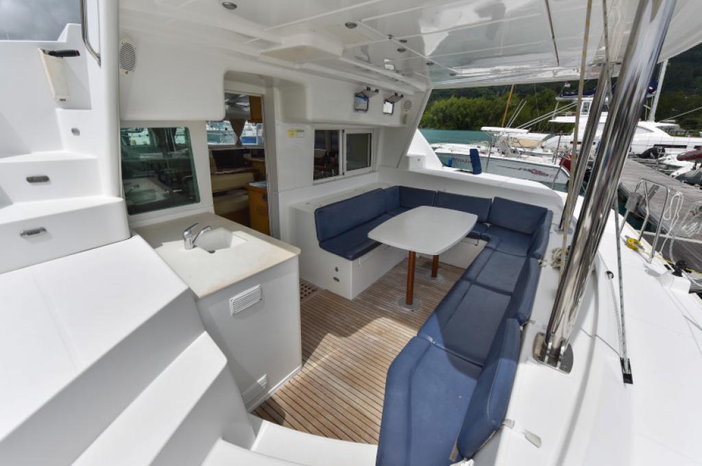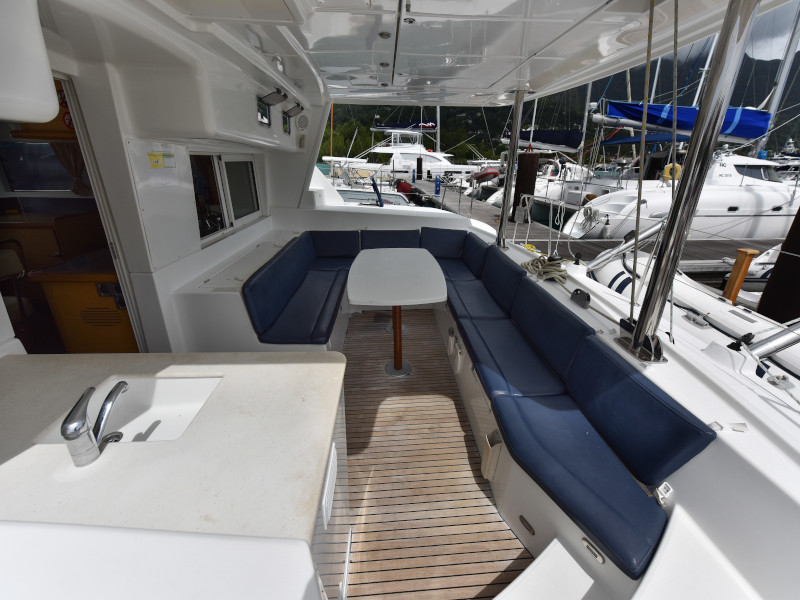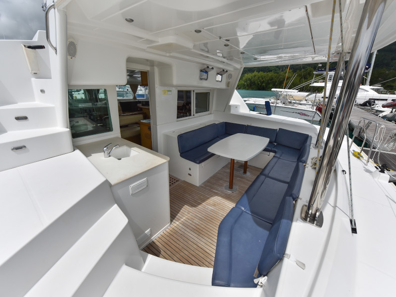 | Outside | Biminitop, Cockpitdusche, Cockpitlautsprecher, Cockpitpolster, Davits, elektr. Winsch, Schnorchelausrüstung, Teak im Cockpit |