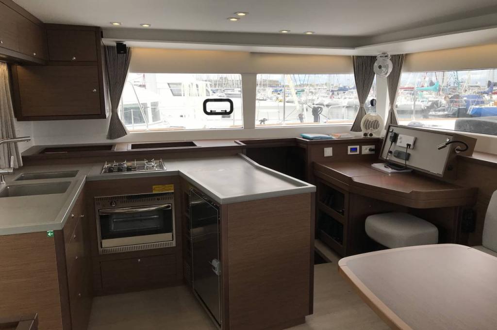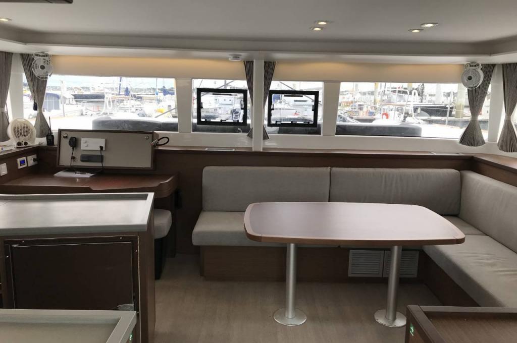 | Outside | 12 V-Anschluss, 220 V-Landanschluss, Badeleiter, Biminitop, Cockpitdusche, Cockpitlautsprecher, Cockpitpolster, Cockpittisch, Davits, elektr. Ankerwinsch, Festmacherleinen, Grill, Schnorchelausrüstung, Sonnendeck |