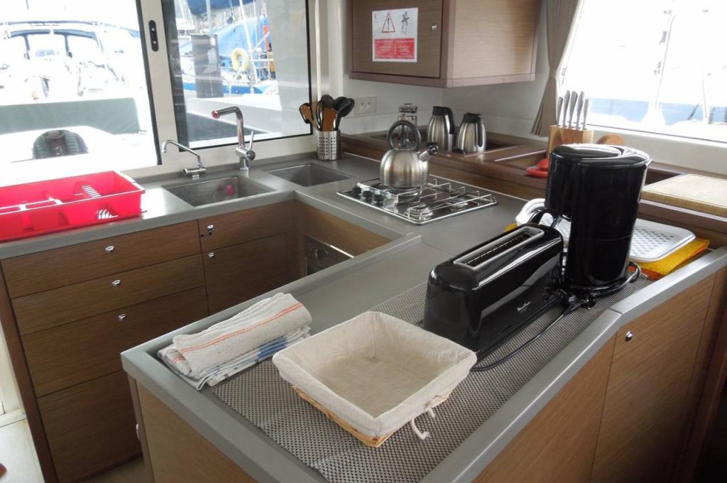 | Outside | 12 V-Anschluss, 220 V-Landanschluss, Badeleiter, Biminitop, Cockpitdusche, Cockpitlautsprecher, Cockpitpolster, Cockpittisch, Davits, elektr. Ankerwinsch, Festmacherleinen, Grill, Schnorchelausrüstung, Sonnendeck, Teak im Cockpit |