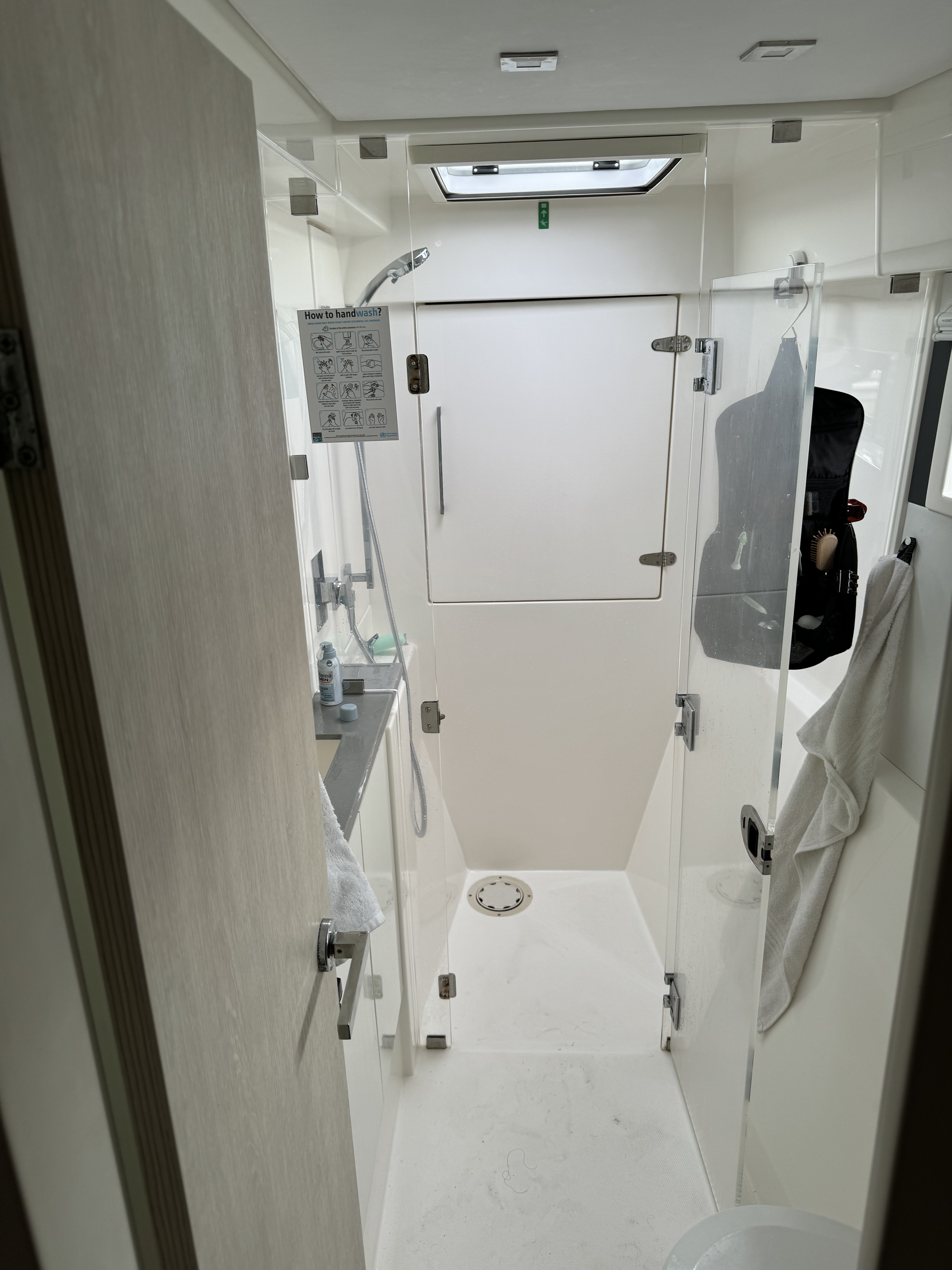 Die Yacht war sehr gut und komplett ausgestattet. Leider bestand die in den Unterlagen aufgeführten Schnorchelausrüstung nur aus Flossen (dafür ausreichend und in allen Größen). Schnorcheln ohne Maske ist dann irgendwie wie Fallschirm ohne Schirm. Ärgerlich, weil ein Teil der Crew seine Ausrüstung noch zu Hause ausgepackt hat, nach dem Hinweis auf die Ausstattung. Ebenfalls hatte die Angaben " alle Yachten mit unlimited Wifi" und "moderne Trinkwasserfilter die Plastikflaschen unnötig machen" auf der Mooringseite eine Erwartungshaltung geweckt, die dann doch so nicht auf dieser unserer Yacht zur Verfügung standen.