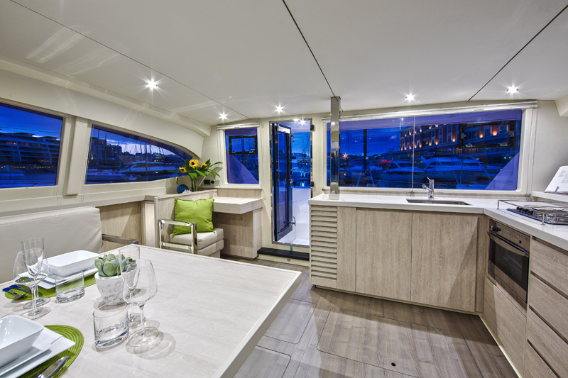 | Outside | 12 V-Anschluss, 220 V-Landanschluss, Badeleiter, Biminitop, Cockpitlautsprecher, Cockpittisch, Davits, Delta-Anker, Fender, Festmacherleinen, Hardtop, Solaranlage, Windex, Winschen |