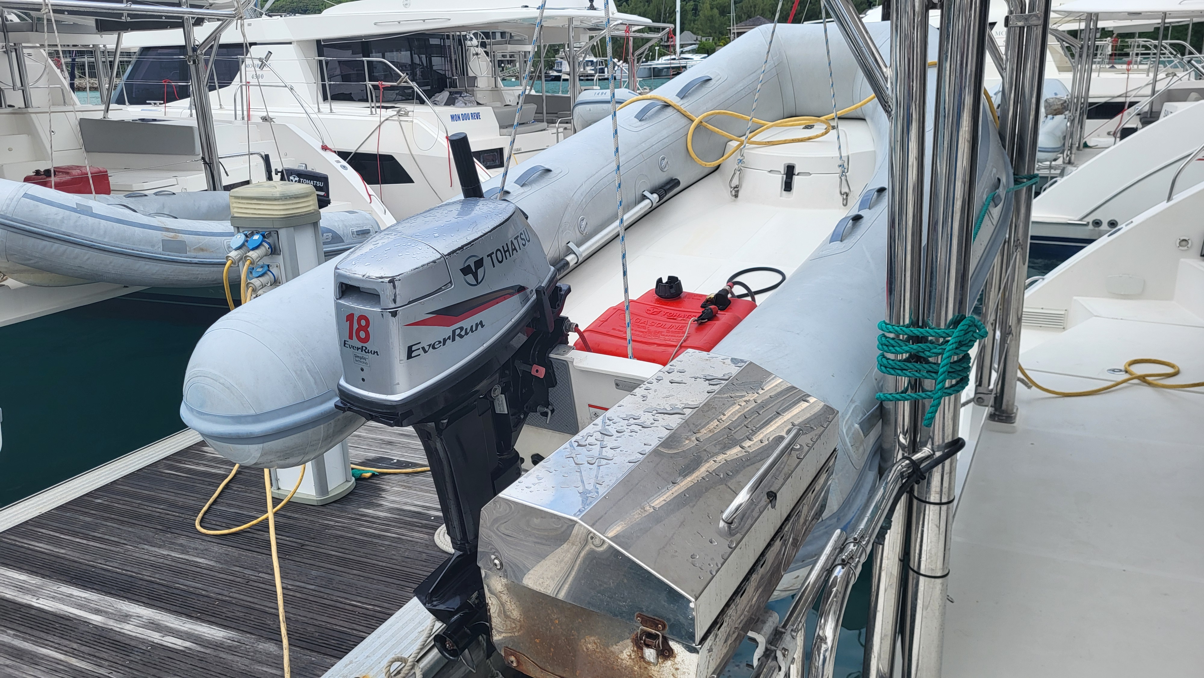 | Outside | Badeleiter, Biminitop, Bootshaken, Cockpitlautsprecher, Cockpitpolster, Cockpittisch, Deckbürste, elektr. Ankerwinsch, elektr. Winsch, Fender, Festmacherleinen, Solaranlage |