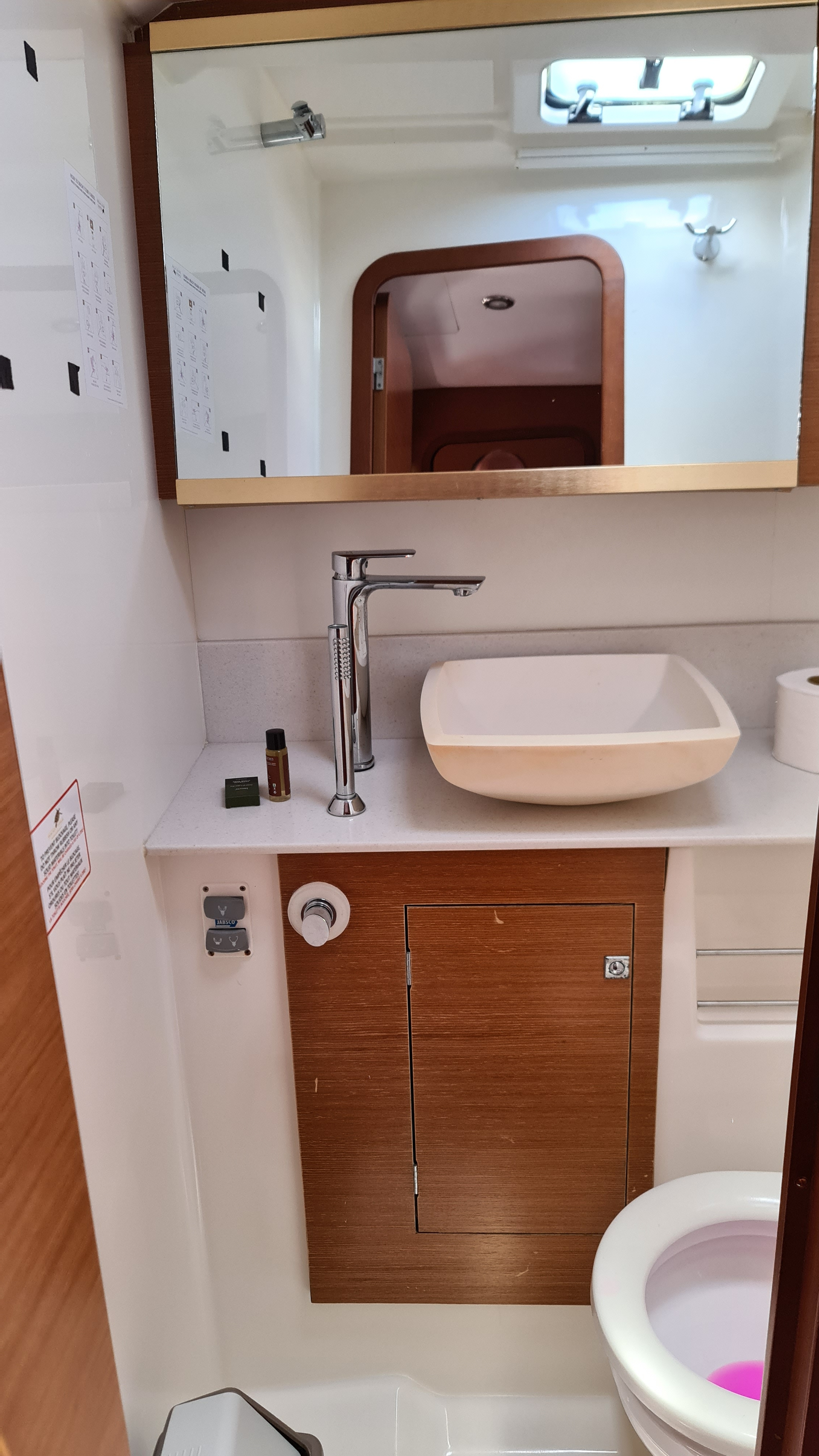 | Outside | 220 V-Landanschluss, Badeleiter, Badeplattform, Biminitop, Cockpitdusche, Cockpitlautsprecher, Cockpitpolster, Cockpittisch, elektr. Ankerwinsch, Selbstholende Winschen, Sprayhood, Teak auf Badeplattform, Teak im Cockpit |