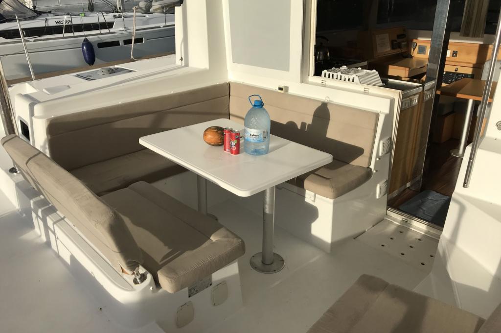 | Outside | 220 V-Landanschluss, Badeleiter, Biminitop, Cockpitdusche, Cockpitlautsprecher, Cockpitpolster, Cockpittisch, Davits, elektr. Ankerwinsch, Selbstholende Winschen |