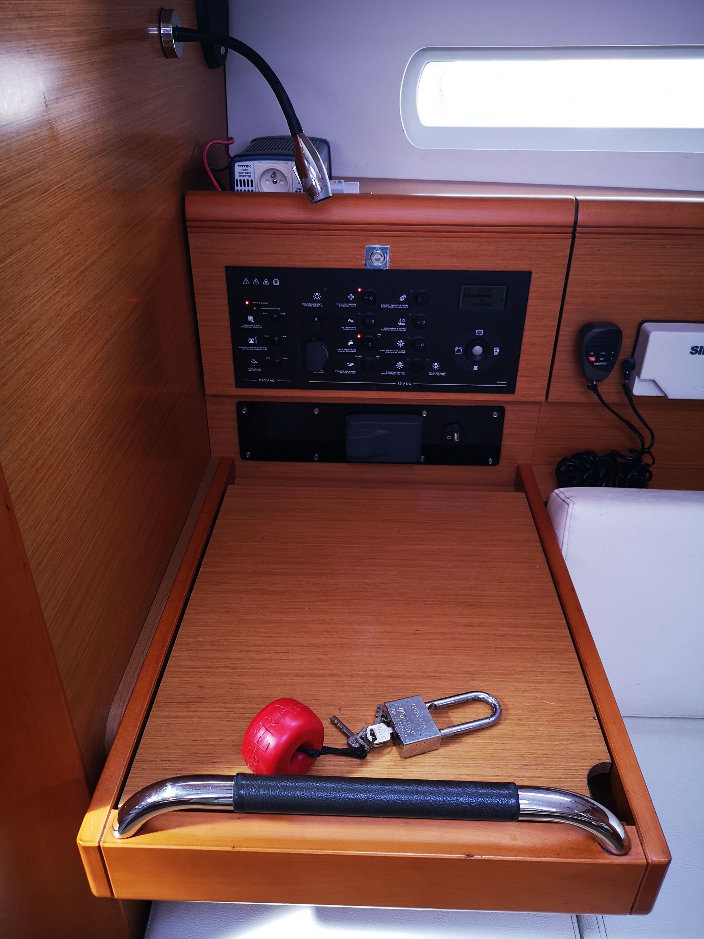 | Outside | 220 V-Landanschluss, Badeleiter, Biminitop, Cockpitlautsprecher, Cockpitpolster, Cockpittisch, elektr. Ankerwinsch, Selbstholende Winschen, Sprayhood |