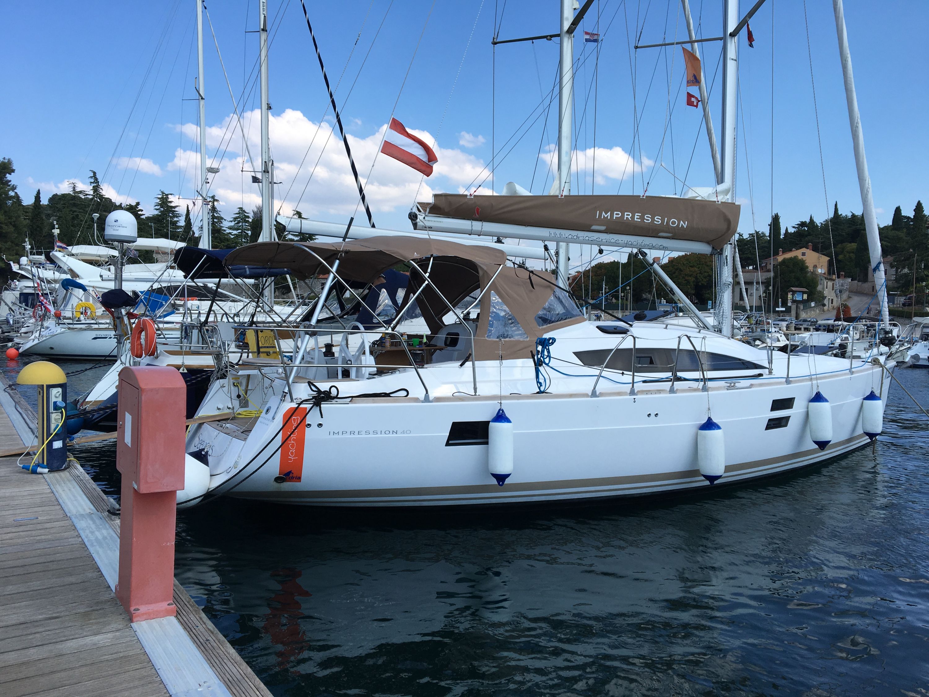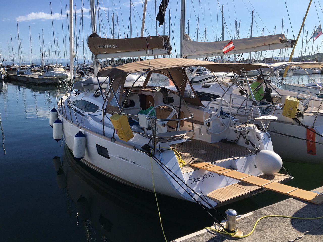 | Outside | 220 V-Landanschluss, Biminitop, Cockpitdusche, Cockpittisch, elektr. Ankerwinsch, Gangway, Sprayhood |