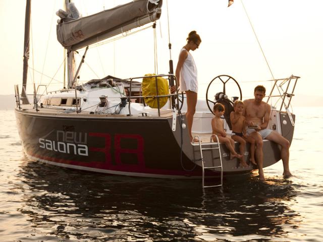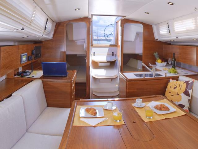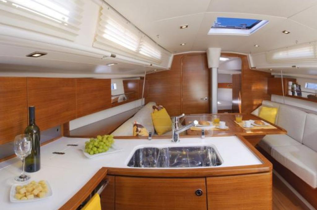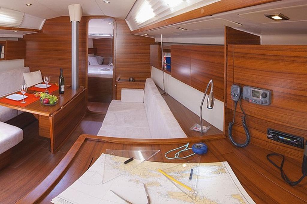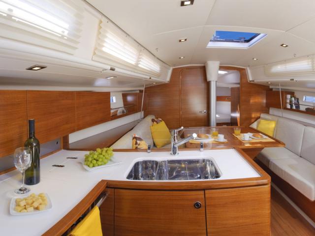 | Outside | Biminitop, Bootshaken, Cockpitdusche, Cockpitlautsprecher, Cockpittisch, elektr. Ankerwinsch, Fender, Gangway, Sprayhood, Teak im Cockpit |