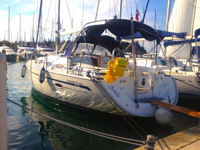 | Outside | 220 V-Landanschluss, Biminitop, Cockpitdusche, Cockpittisch, elektr. Ankerwinsch, Fender, Gangway, Sprayhood, Teak im Cockpit, Wantenschneider, Wasserschlauch |