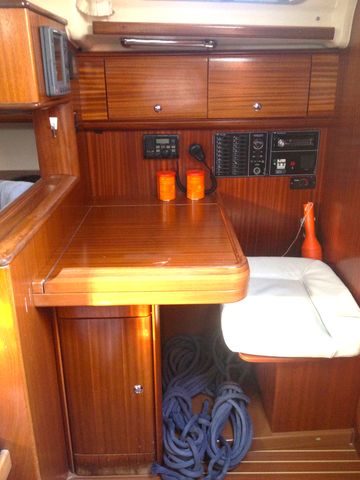 | Navigation | Echolot, Fernglas, GPS mit Kartenplotter im Cockpit, GPS mit Kartenplotter im Salon, Navigationsbesteck, Radar, Seekarten, Sumlog, Windmesser |