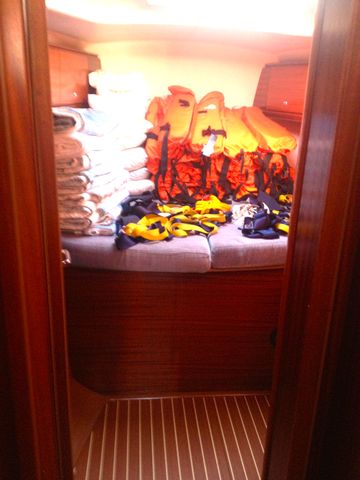 | Safety | Automatikwesten, Autopilot, Bootsmannstuhl, Bordwerkzeug, Feuerlöscher, Lifebelts, Notpinne, Notsignale, Rettungsinsel, UKW-Funk, Zweitanker |