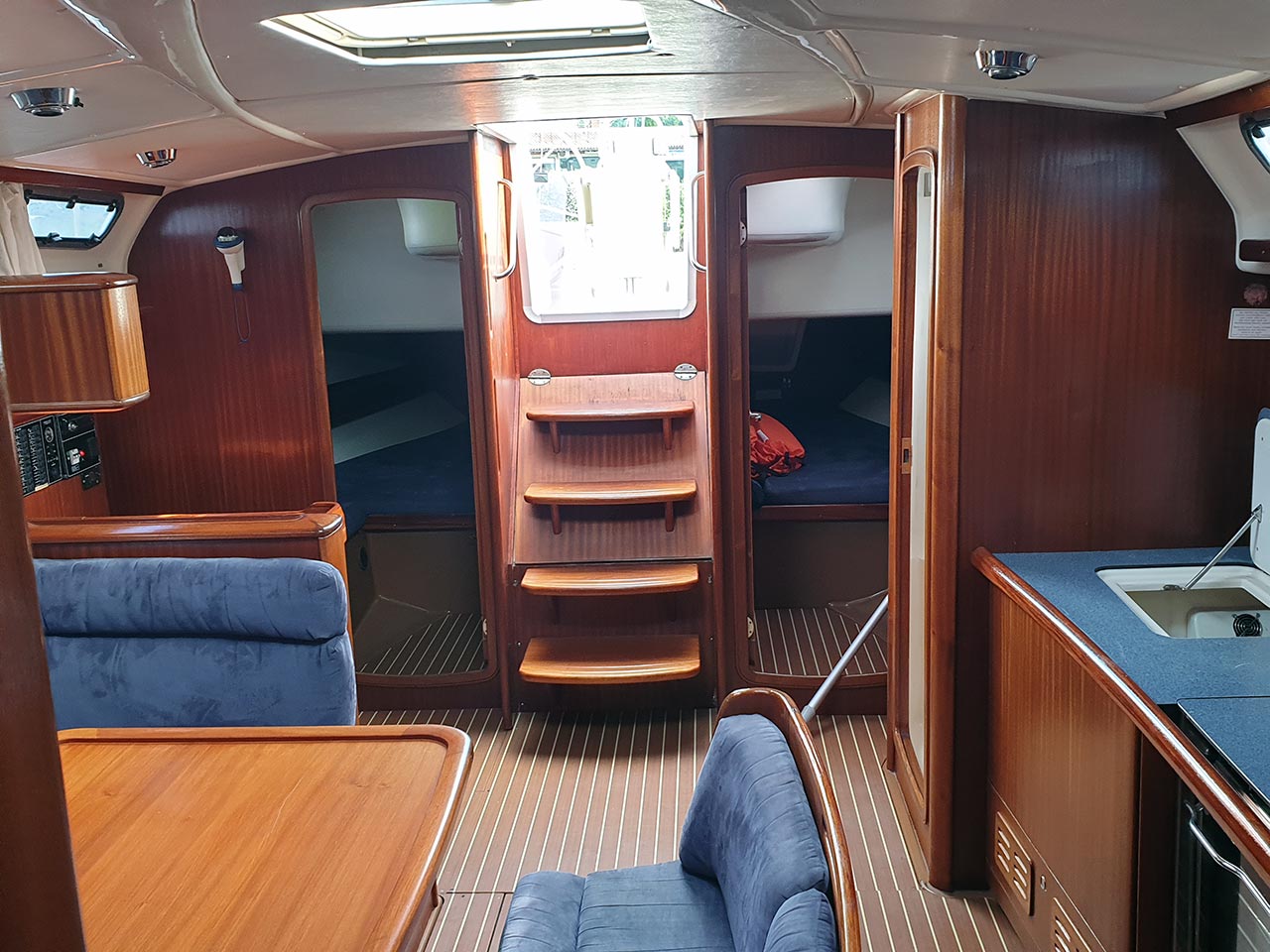 | Inside | Borduhr, Heizung, Kühlschrank, Ladegerät, Luftpumpe für Beiboot, Pantryausstattung, Radio, Warmwasser |