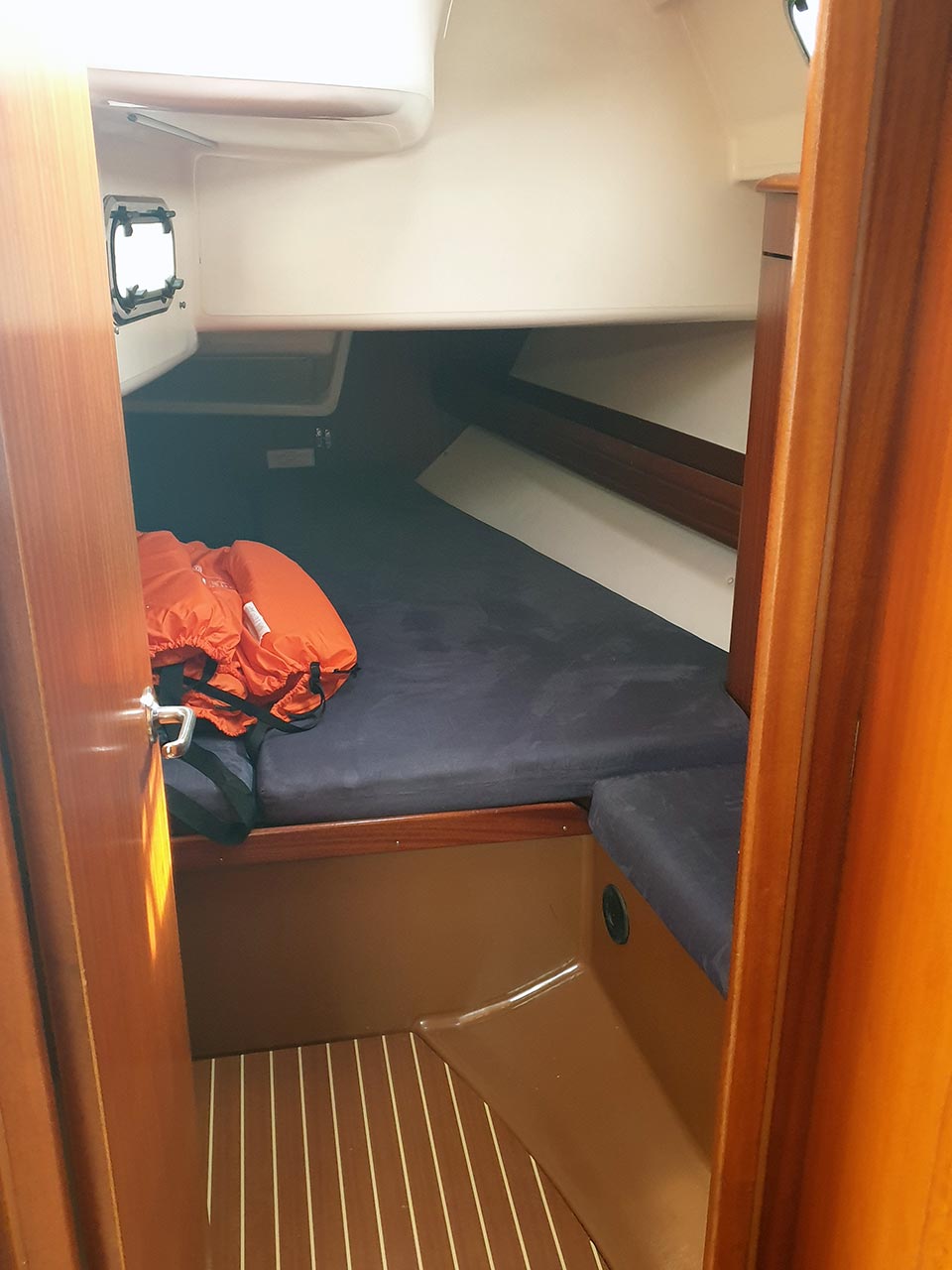 | Safety | Automatikwesten, Autopilot, Blitzboje, Bootsmannstuhl, Bordapotheke, Bordwerkzeug, Feuerlöscher, Lifebelts, Nebelhorn, Notsignale, Taschenlampe, UKW-Funk, Zweitanker |