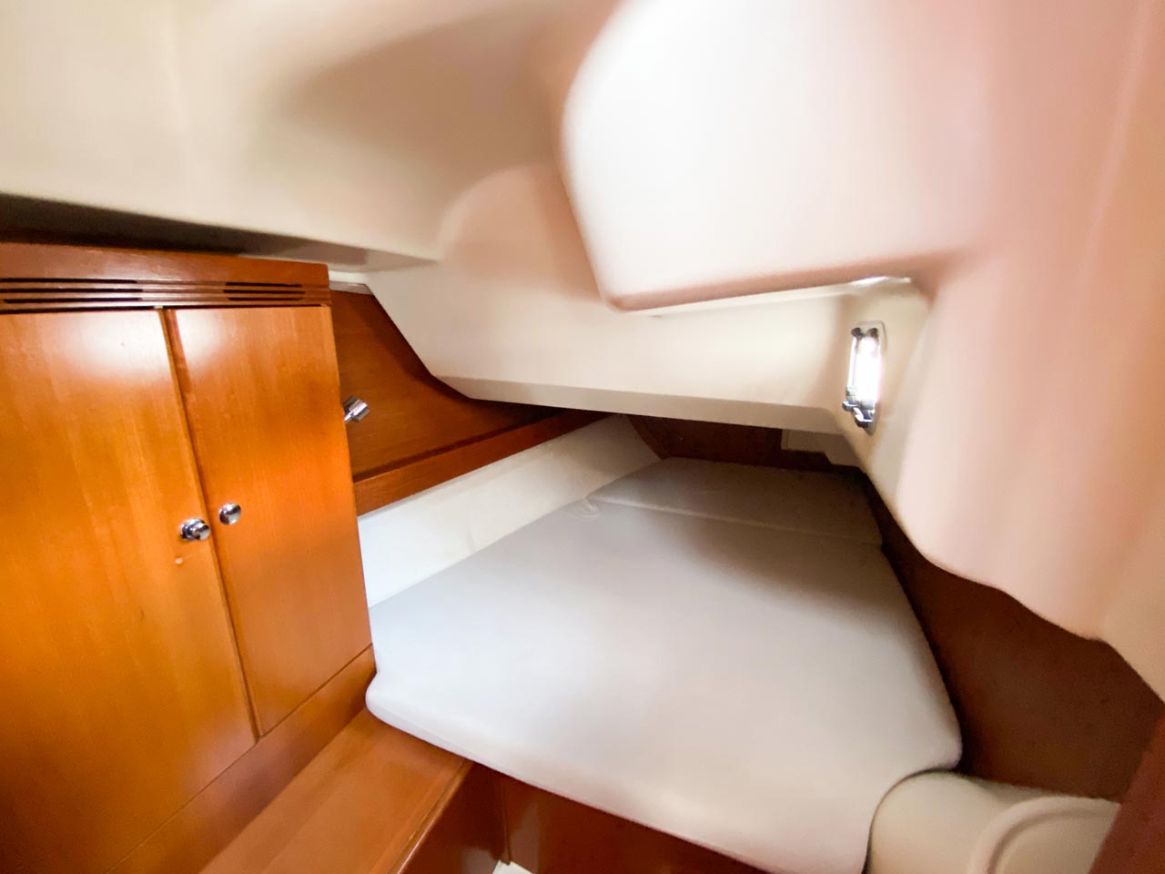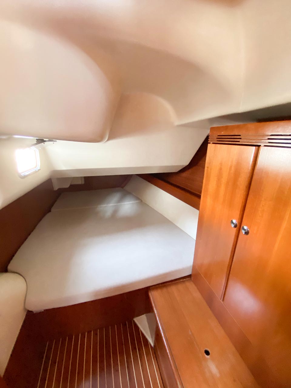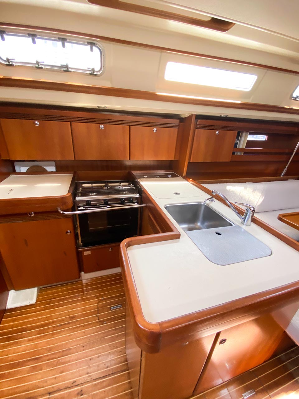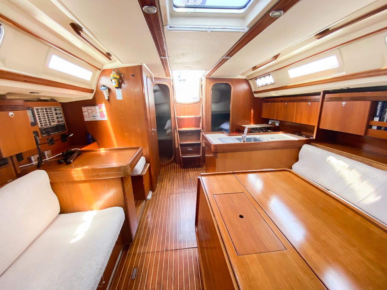 | Navigation | Barometer, Fernglas, GPS mit Kartenplotter im Cockpit, Hafenhandbücher, Handpeilkompass, Navigationsbesteck, Seekarten, Tridata (Log, Echolot, Windm.) |