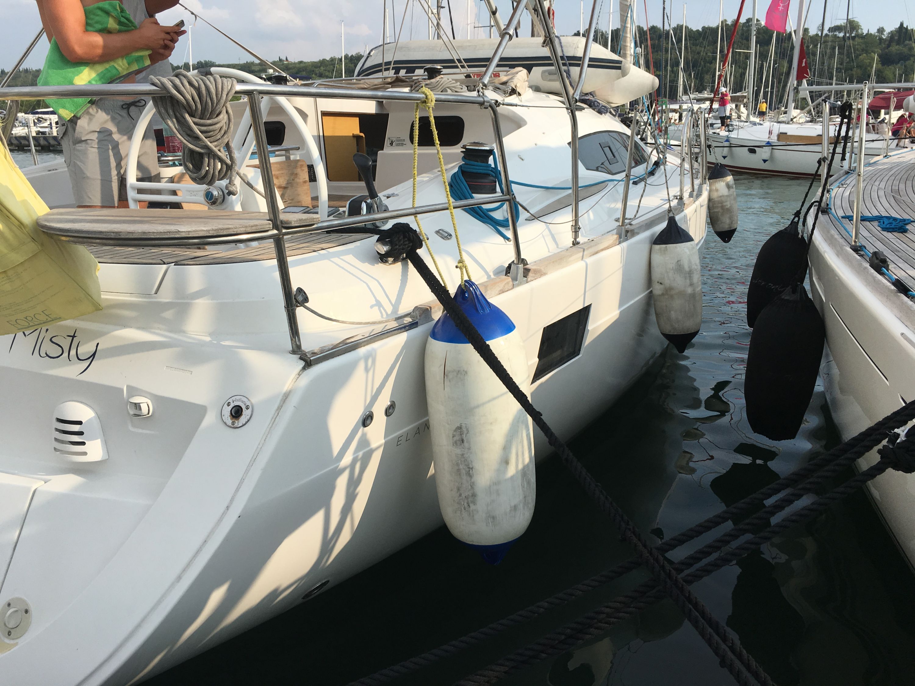 | Outside | 220 V-Landanschluss, Badeplattform, Biminitop, Cockpitdusche, Cockpittisch, elektr. Ankerwinsch, Fender, Gangway, Sprayhood, Teak im Cockpit |