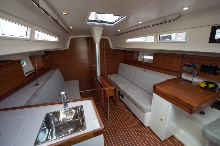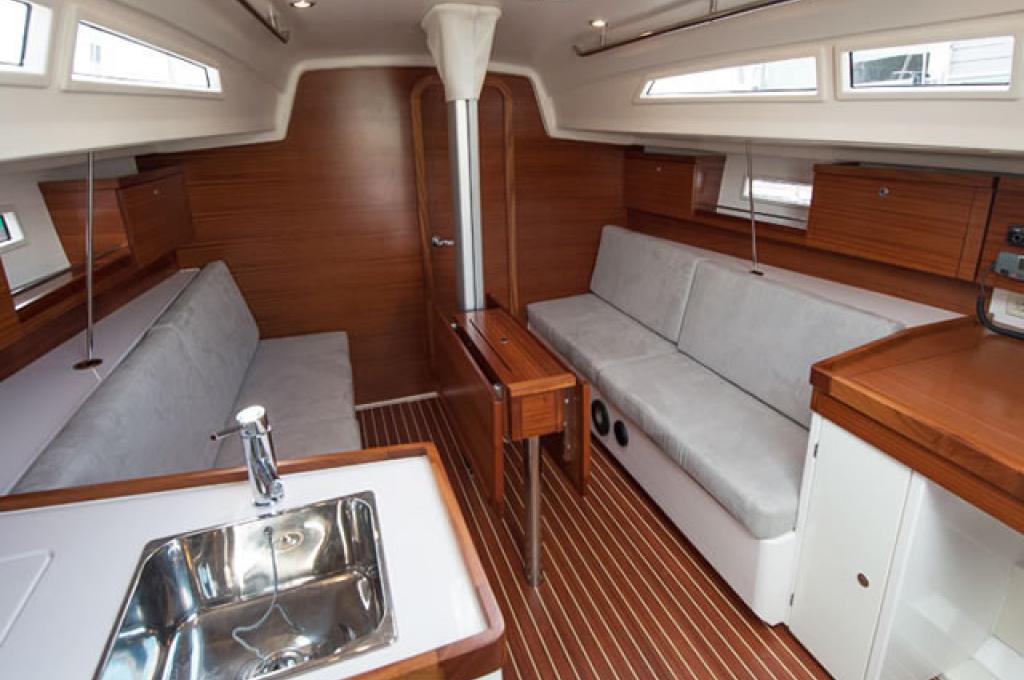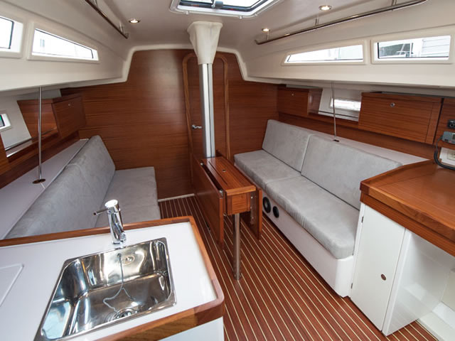 | Outside | Badeplattform, Biminitop, Cockpitdusche, Cockpitlautsprecher, Cockpittisch, elektr. Ankerwinsch, Fender, Gangway, Sprayhood, Teak im Cockpit |
