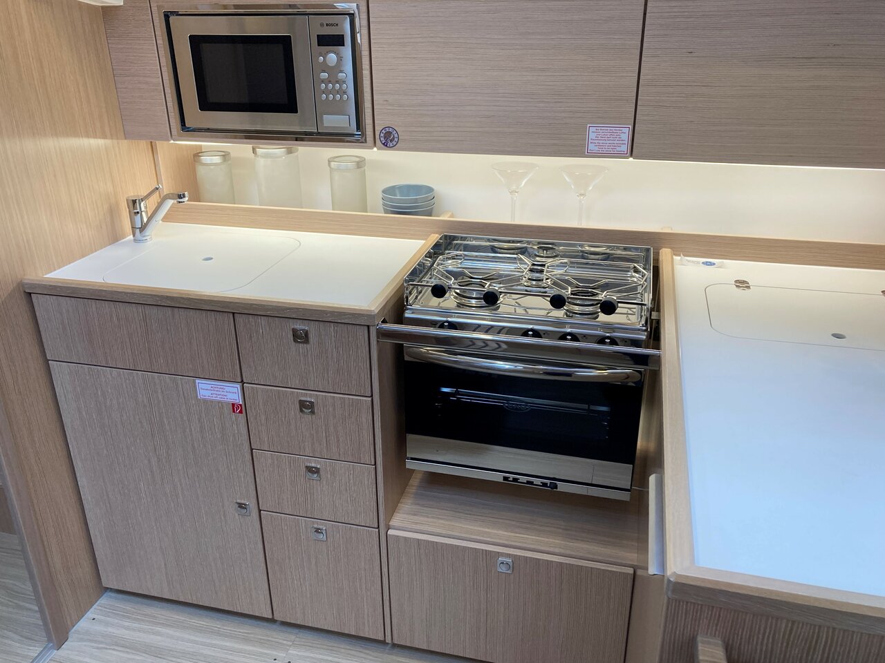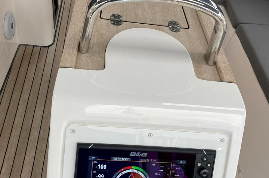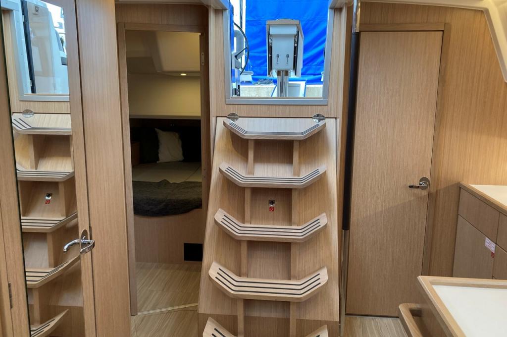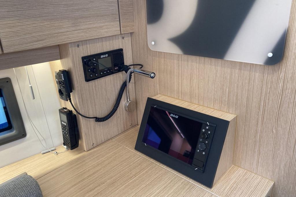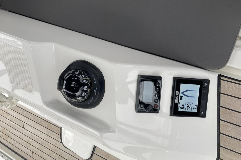 | Safety | AIS Empfänger, Automatikwesten, Autopilot, Blitzboje, Bootsmannstuhl, Bordapotheke, Bordwerkzeug, Bugstrahlruder, elektr. Bilgepumpe, Feuerlöscher, Lifebelts, Nebelhorn, Notpinne, Notsignale, Rettungsinsel, Taschenlampe, UKW-Funk, Zweitanker |