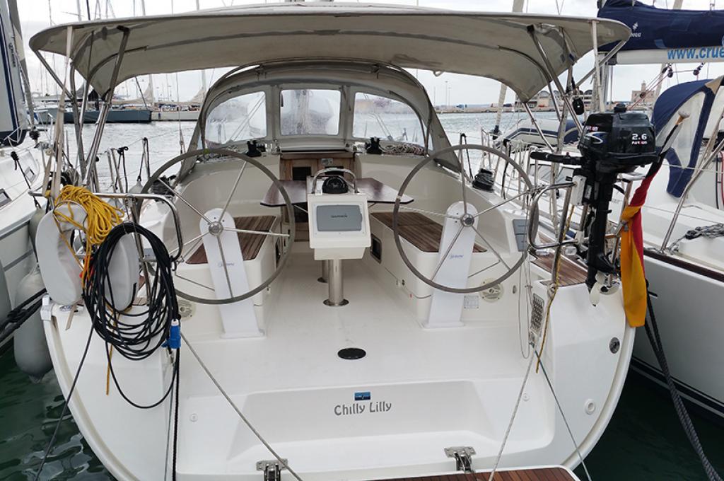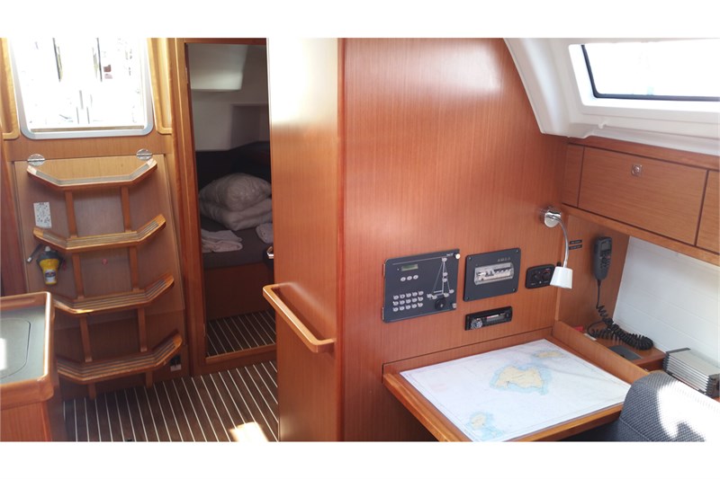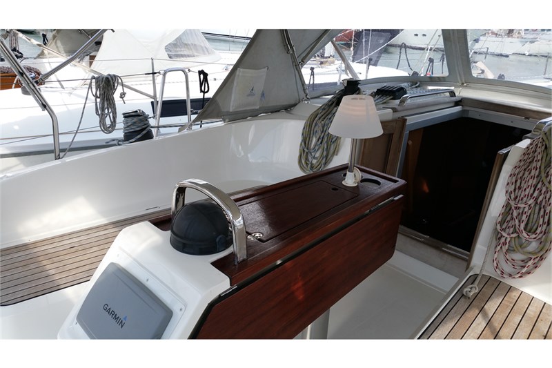 | Navigation | Barometer, Echolot, Fernglas, GPS mit Kartenplotter im Cockpit, Hafenhandbücher, Handpeilkompass, Kompass, Seekarten, Sumlog, Windmesser |