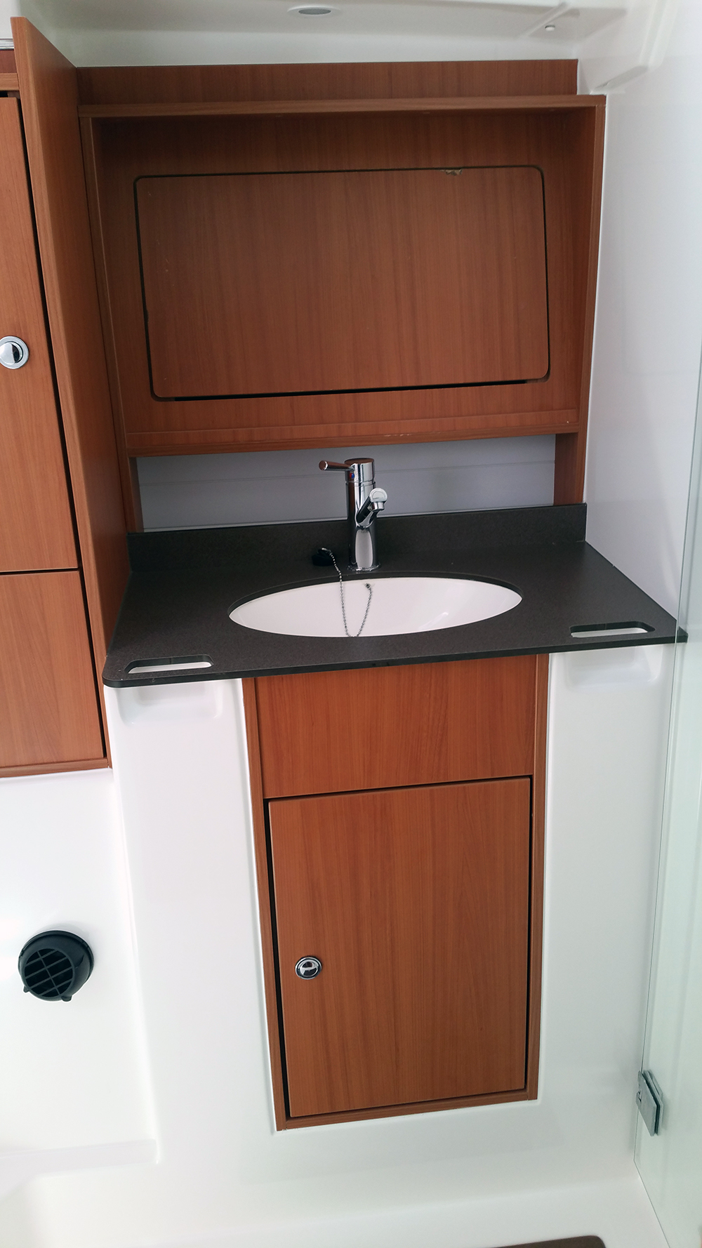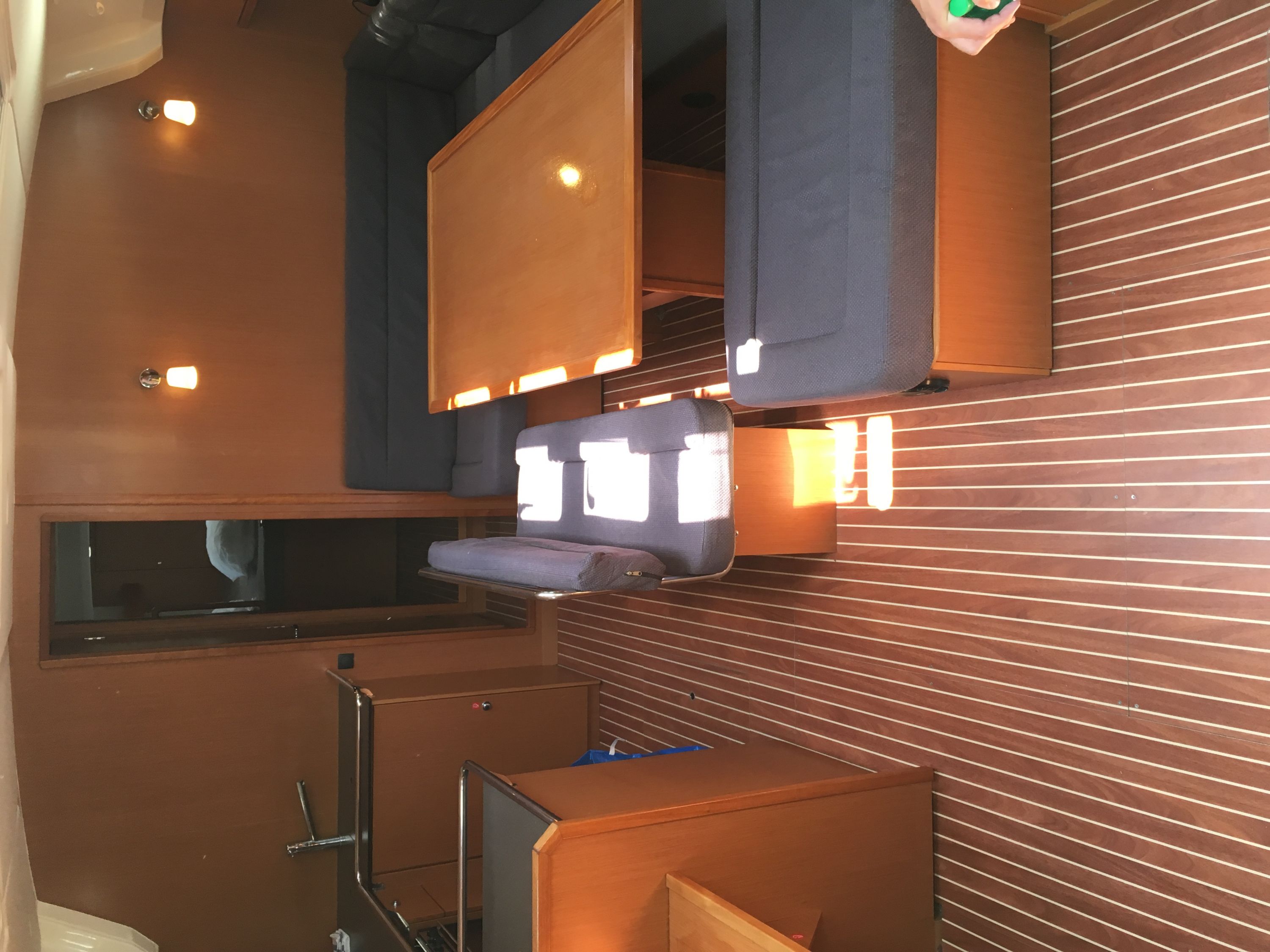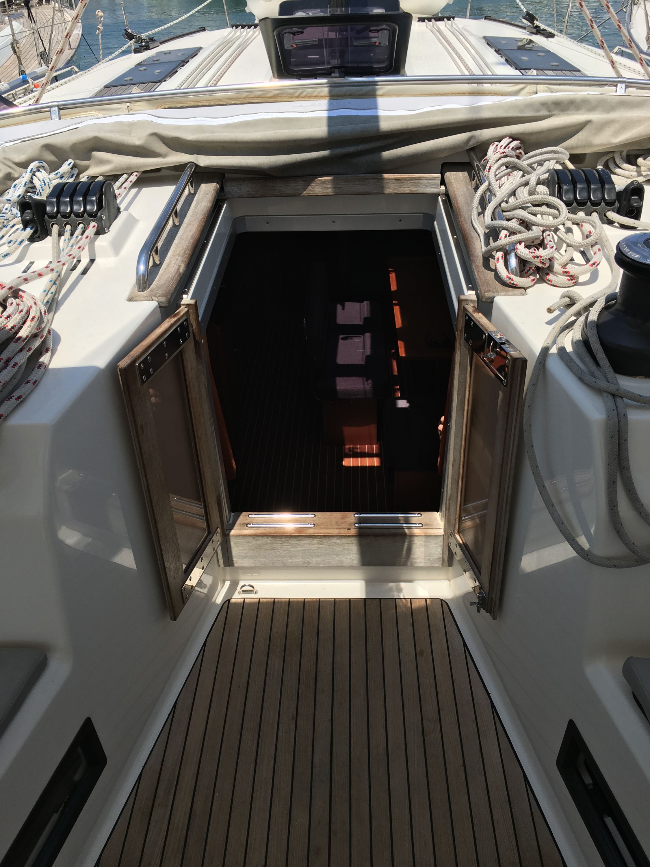| Outside | 12 V-Anschluss, 220 V-Landanschluss, Badeleiter, Badeplattform, Benzinkanister, Biminitop, Cockpitdusche, Cockpitlautsprecher, Cockpittisch, elektr. Ankerwinsch, Fender, Gangway, Heckdusche, Kugelfender, Sprayhood, Teak im Cockpit, Treibanker, Windex |