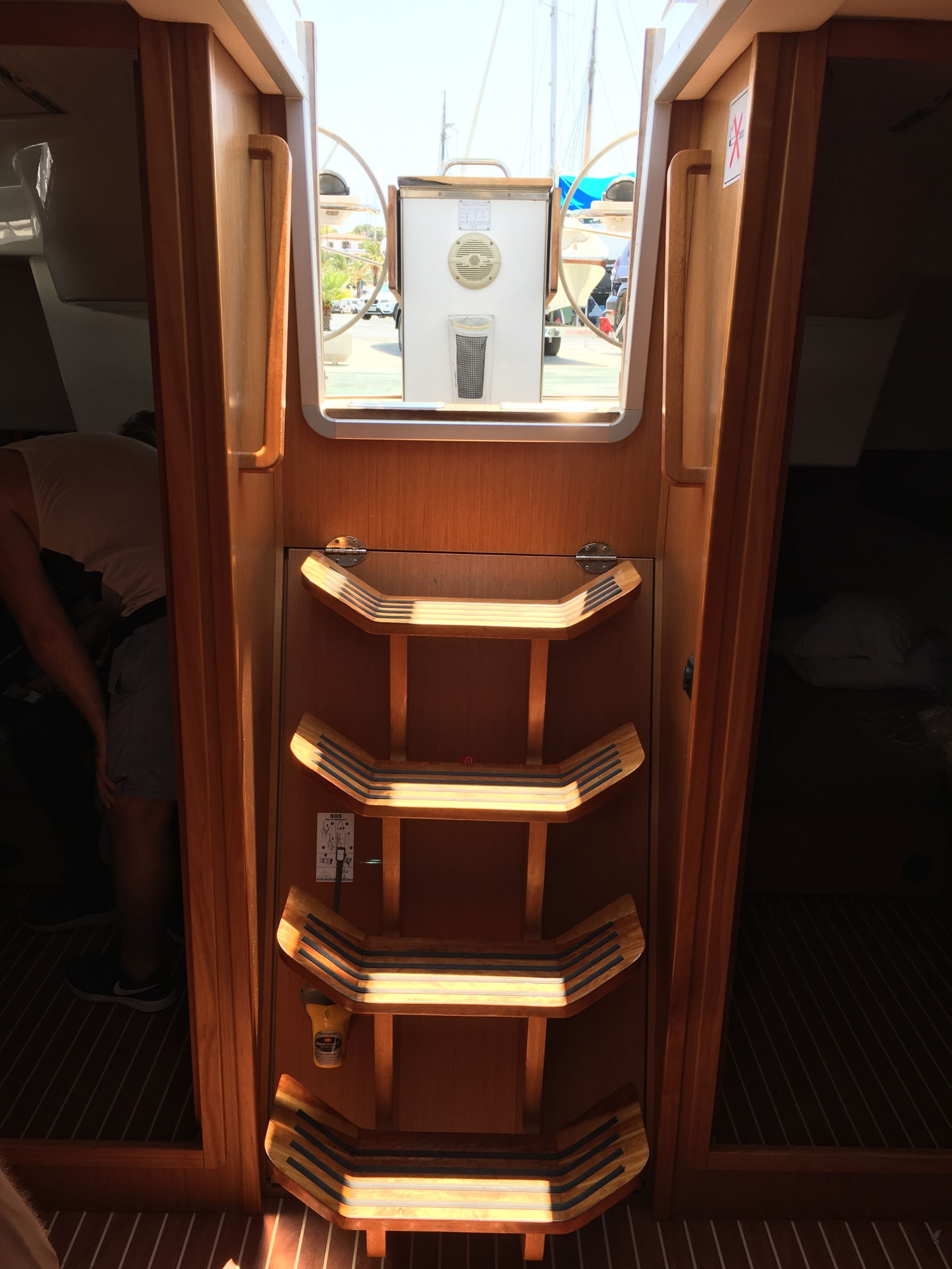 | Safety | AIS Empfänger, Automatikwesten, Autopilot, Blitzboje, Bootsmannstuhl, Bordapotheke, Bordwerkzeug, Bugstrahlruder, elektr. Bilgepumpe, Epirb, Feuerlöscher, Flaggen, GMDSS, Leuchtboje, Lifebelts, Navigationslichter, Nebelhorn, Notpinne, Notsignale, Rettungsinsel, Rettungskragen, Sicherheitsausrüstung, Sicherheitsgurt, Taschenlampe, UKW-Funk, Zweitanker |
