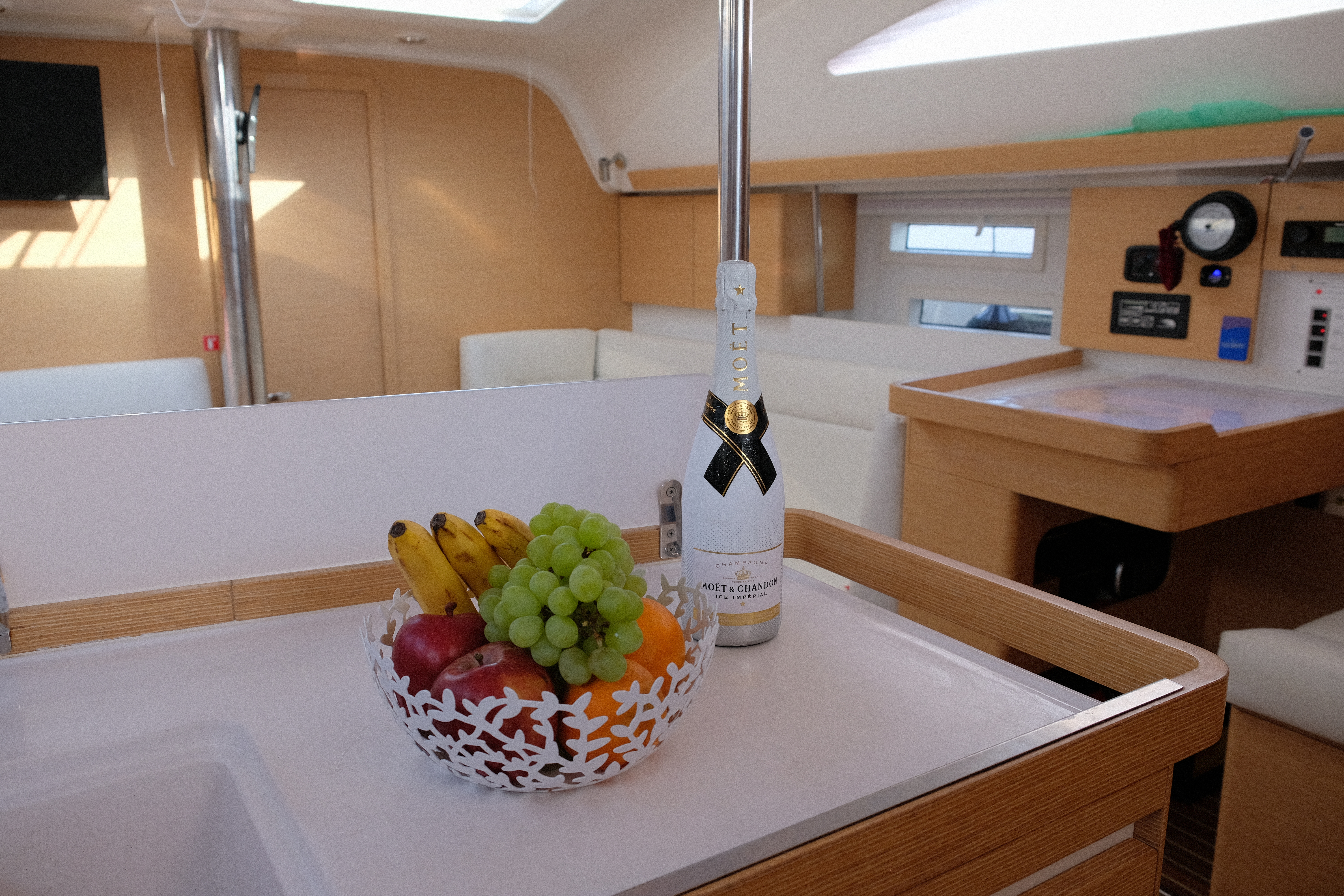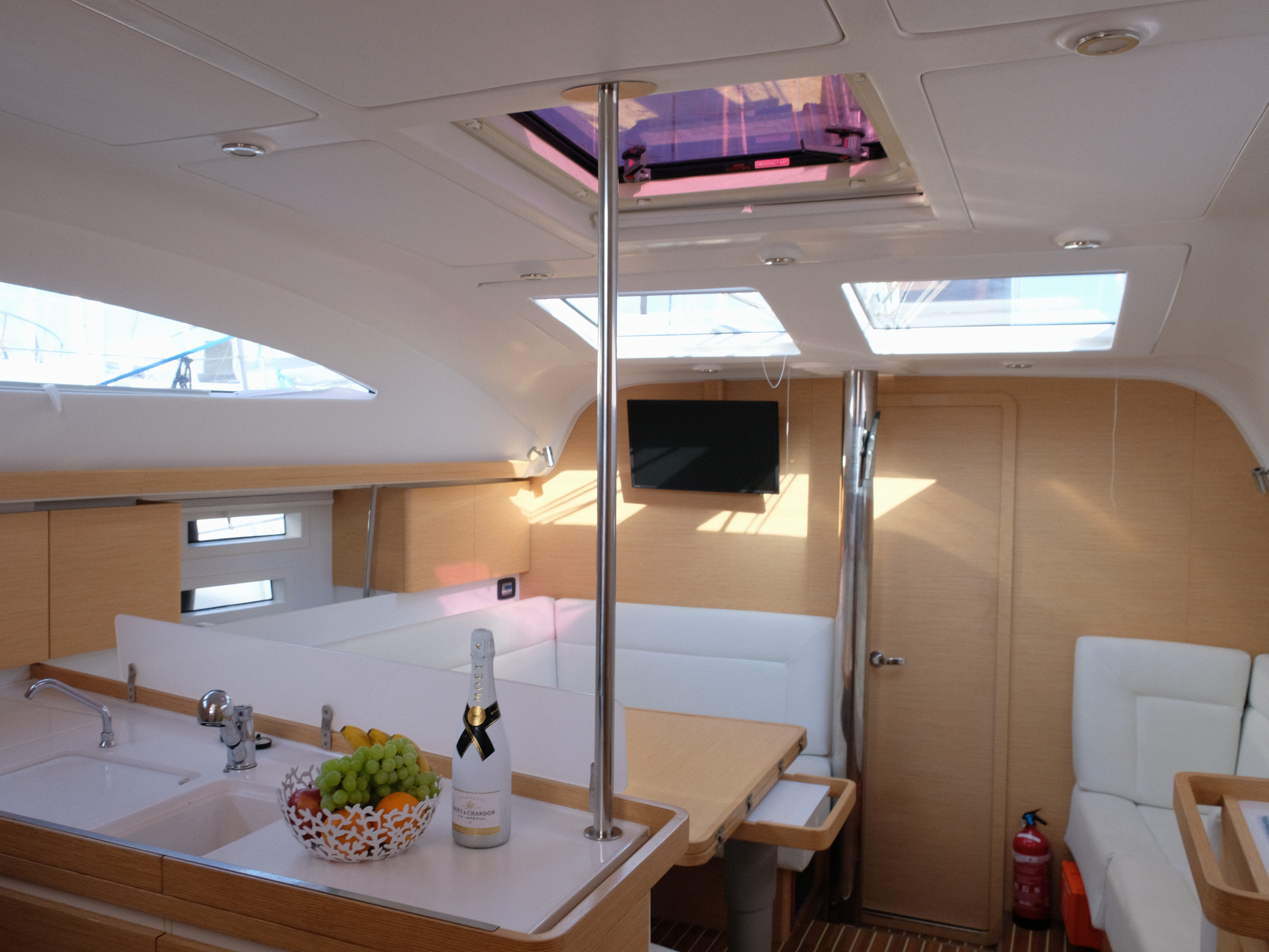 | Safety | AIS Empfänger, Autopilot, Bordapotheke, Bordwerkzeug, Bugstrahlruder, elektr. Bilgepumpe, Epirb, Feuerlöscher, Flaggen, Handbilgepumpe, Lifebelts, Löschdecke, Radarreflektor, Rettungsinsel, Rettungsring, Rettungswesten, Taschenlampe |