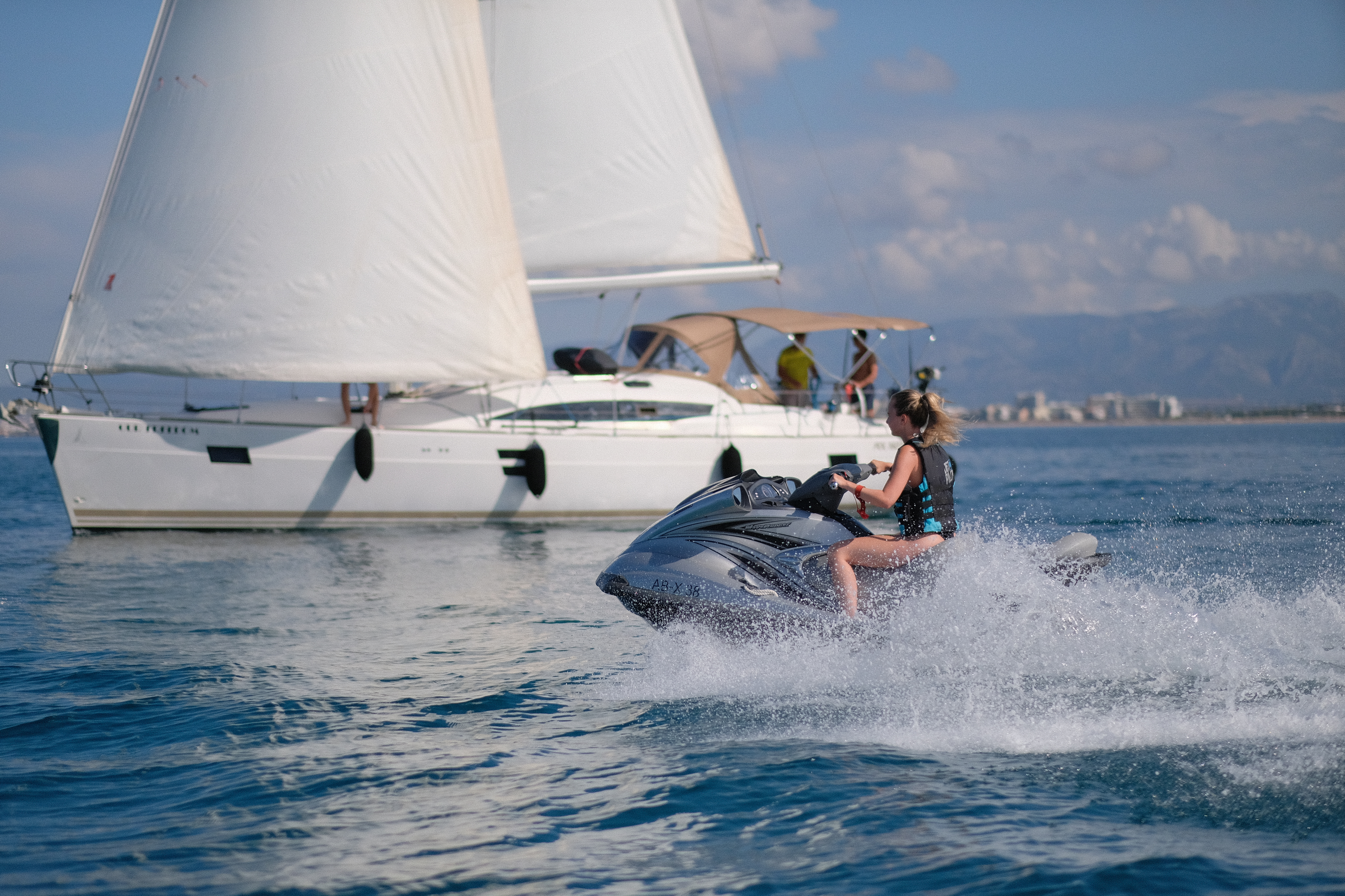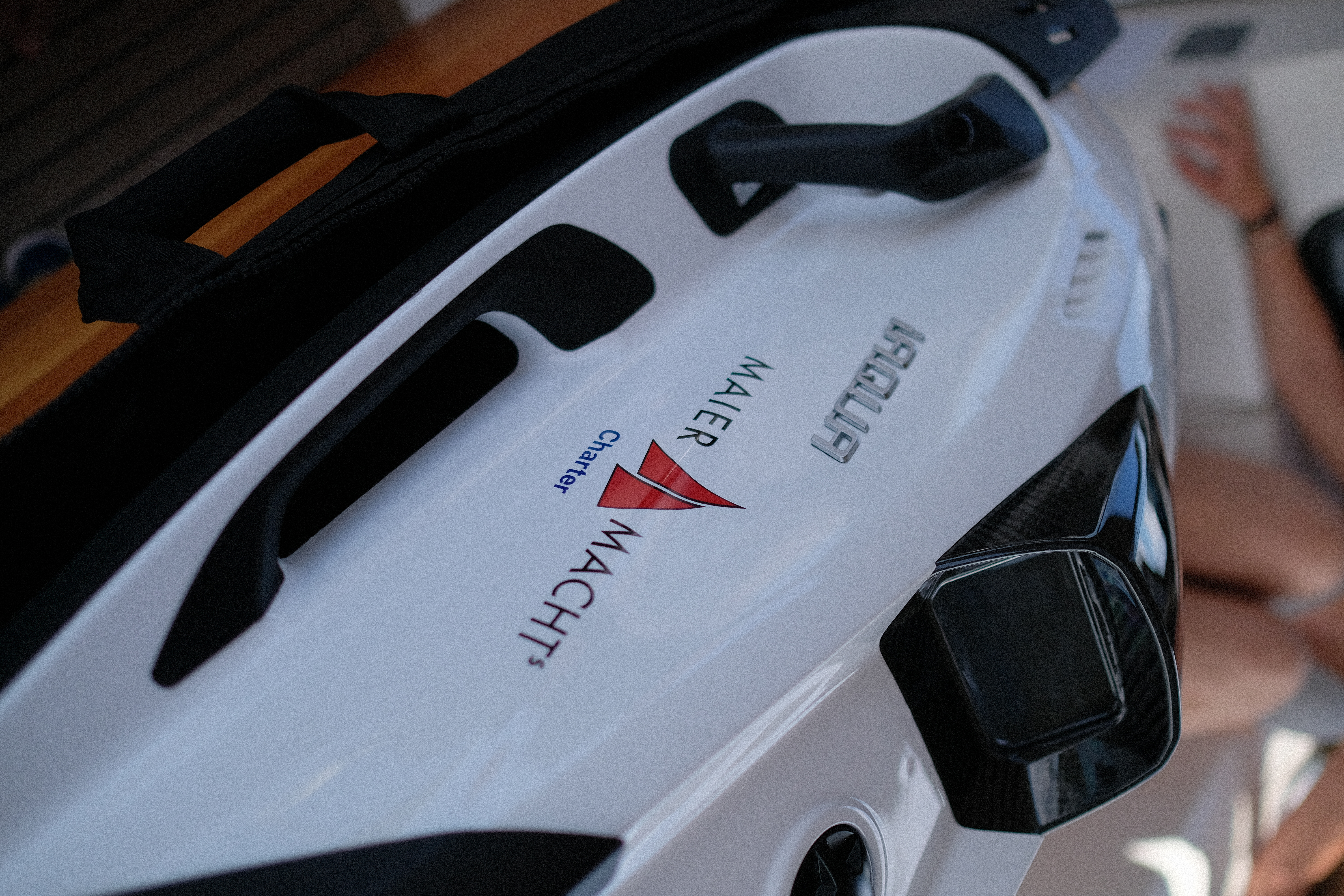 | Outside | 220 V-Landanschluss, Anker mit Kette, Badeleiter, Badeplattform, Biminitop, Cockpitlautsprecher, Cockpittisch, elektr. Winsch, Fender, Jetski, Sprayhood |