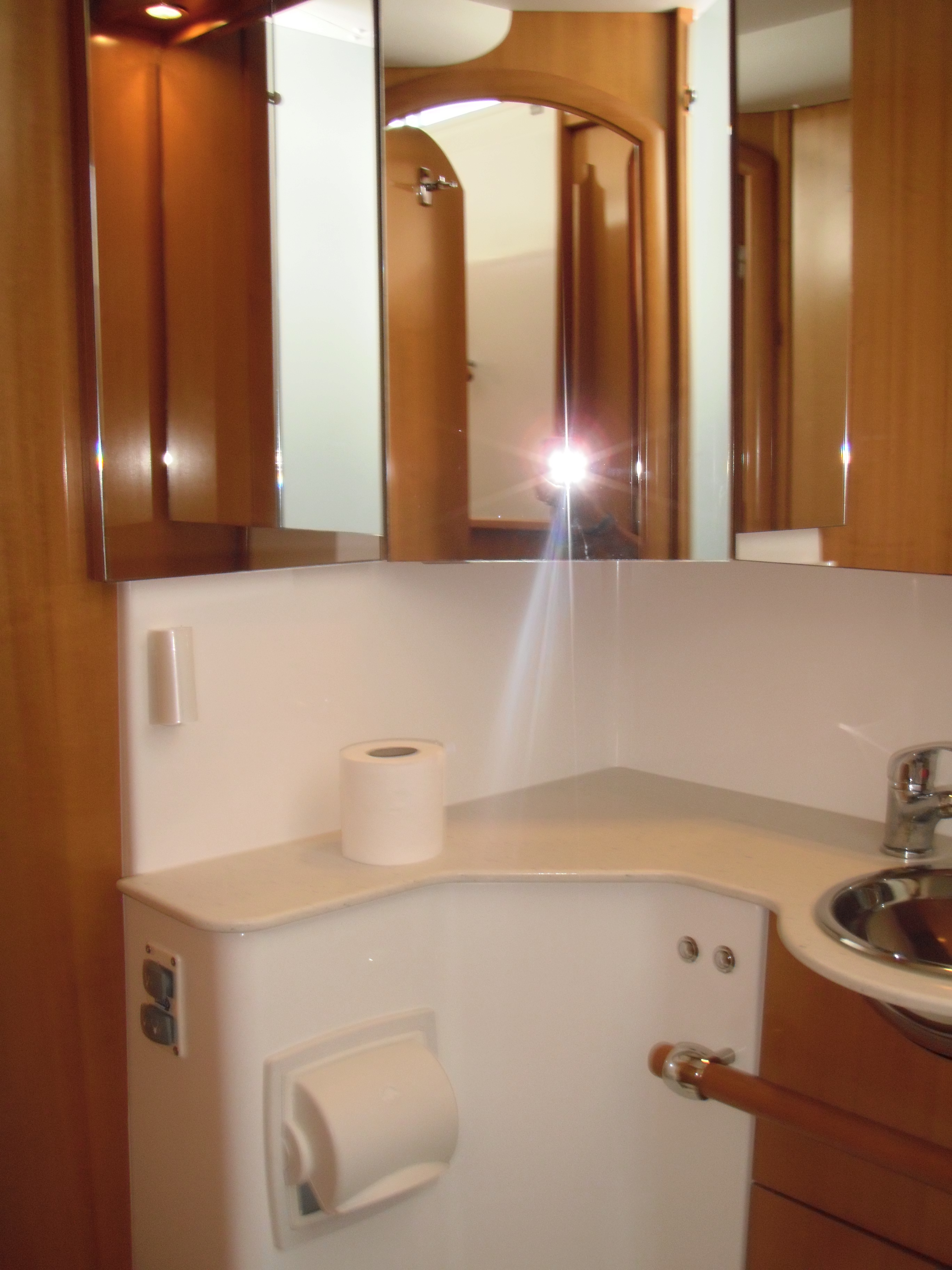 | Inside | Generator, Inverter 12V/220V, Kühlschrank, Ladegerät, Mikrowelle, Radio mit CD, TV, Warmwasser, Watermaker |