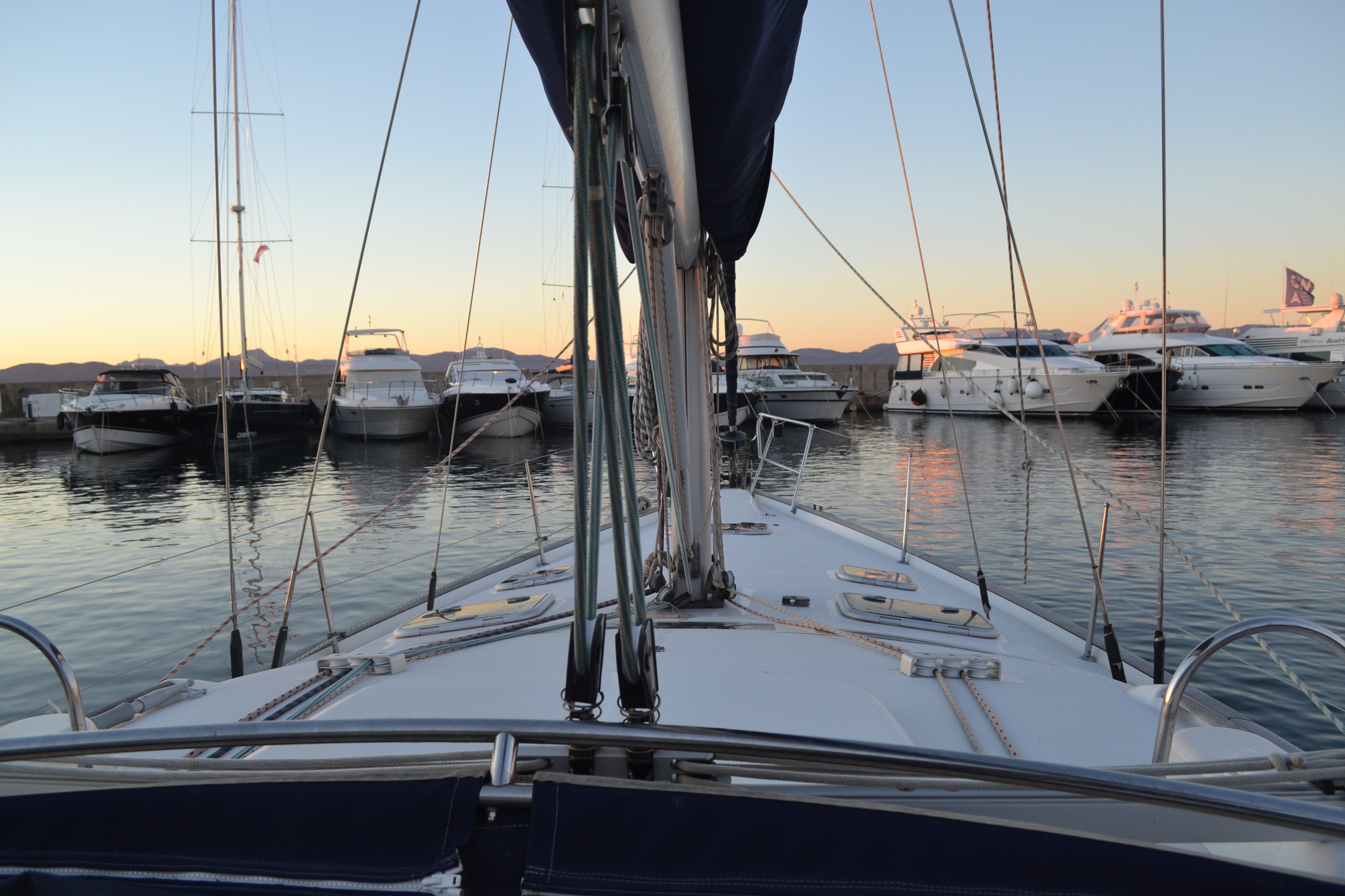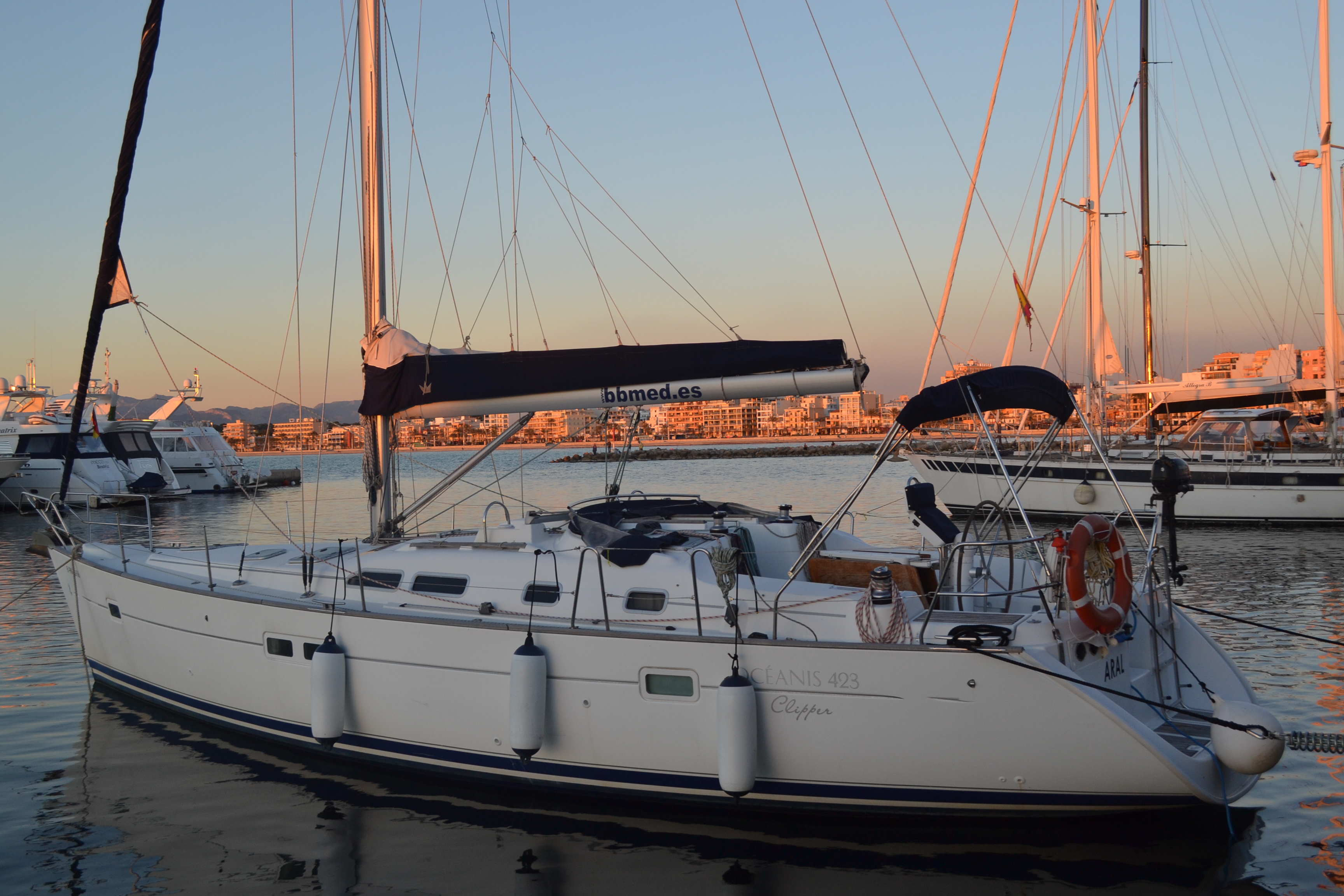 | Outside | 220 V-Landanschluss, Biminitop, Cockpittisch, elektr. Ankerwinsch, Heckdusche, Teak im Cockpit |