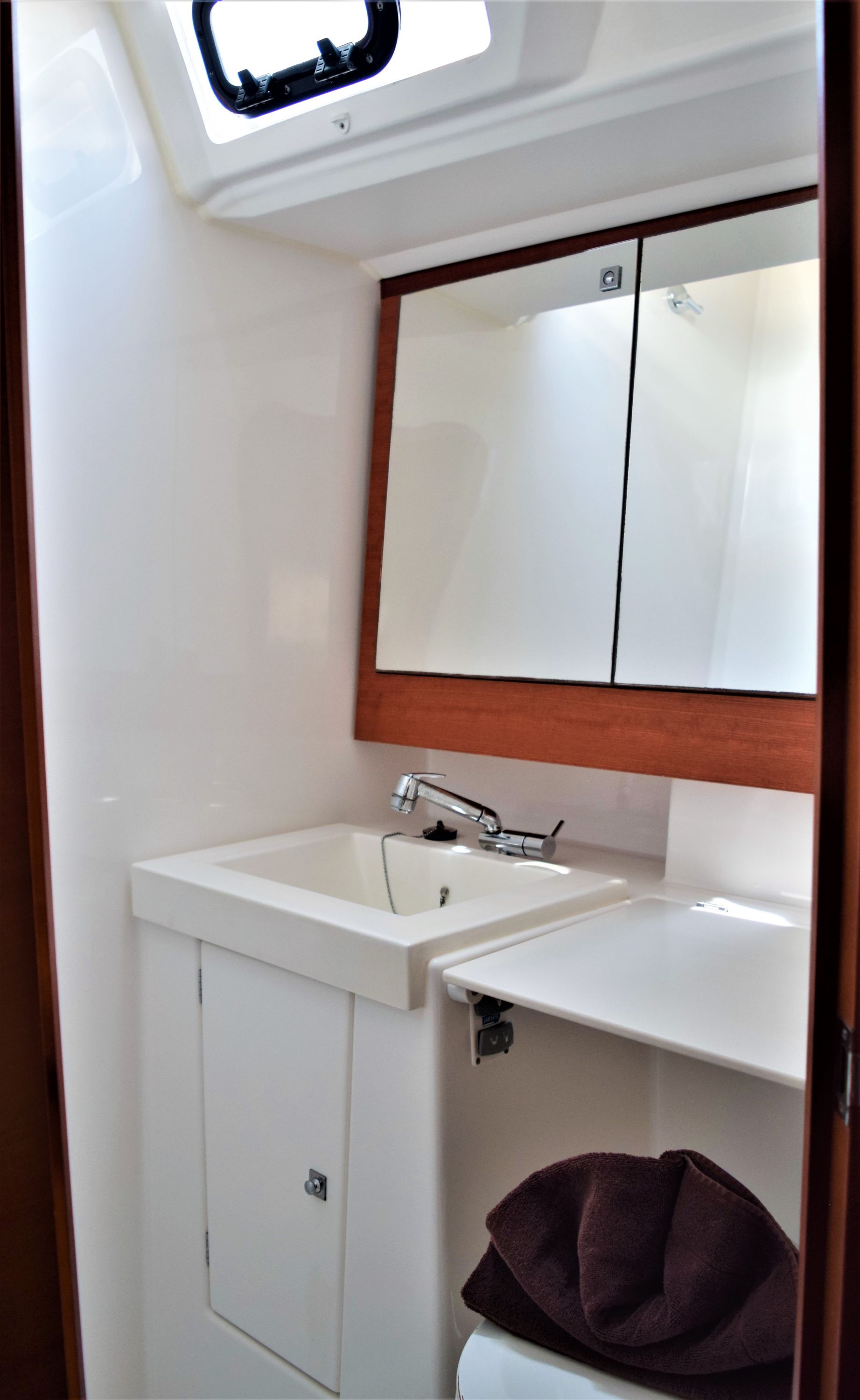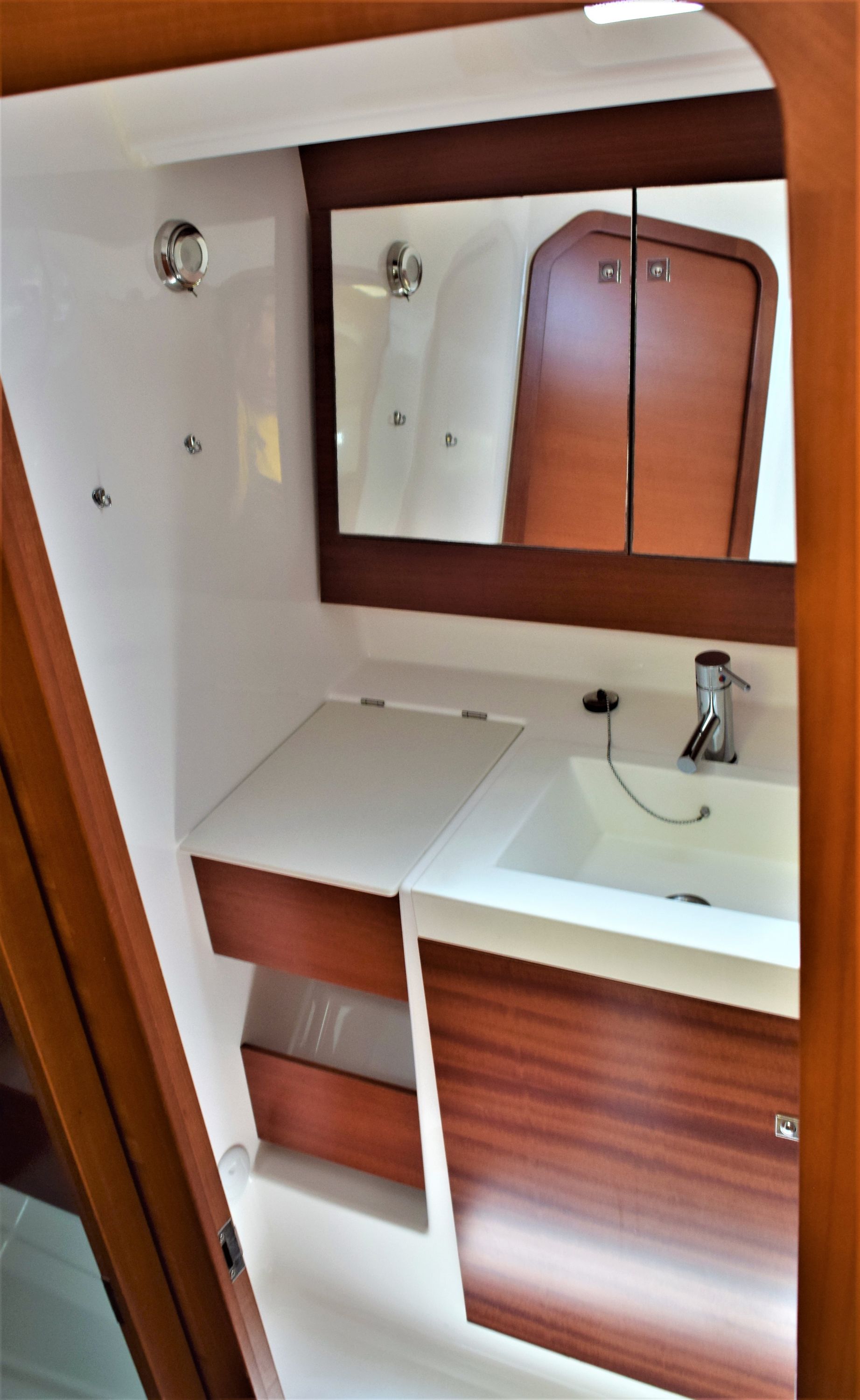 | Outside | 220 V-Landanschluss, Anker mit Kette, Badeleiter, Badeplattform, Biminitop, Cockpitdusche, Cockpitkühlschrank, Cockpitlautsprecher, Cockpitleuchte, Cockpitpolster, Cockpittisch mit Eisbox, elektr. Ankerwinsch, Grill, Heckdusche, Rodkicker, Sprayhood, Teakdeck |