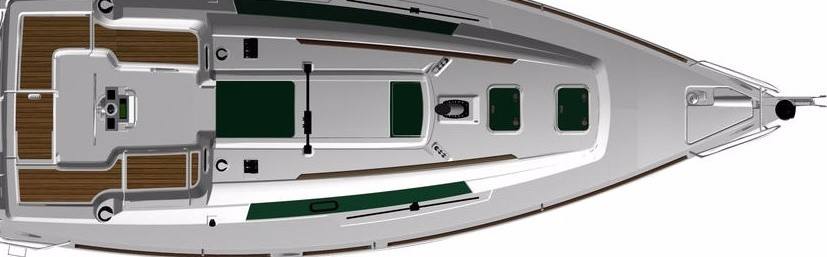 | Outside | Außendusche, Badeleiter, Biminitop, Cockpitlautsprecher, Cockpitpolster, Cockpittisch, elektr. Ankerwinsch, Heckdusche, Teak im Cockpit, Windex |