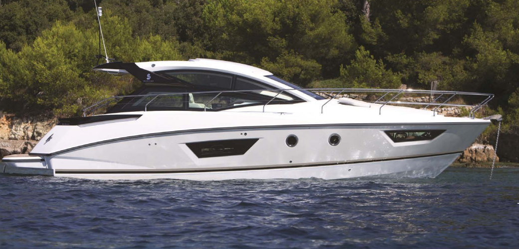 | Outside | 12 V-Anschluss, 220 V-Landanschluss, Badeleiter, Badeplattform, Cockpitdusche warm/kalt, Cockpitkühlschrank, Cockpitlautsprecher, Cockpitpolster, Cockpittisch (klappbar), Deckpolster, elektr. Ankerwinsch, Elektrogrill, Hardtop, Teak auf Badeplattform |
