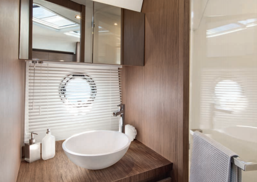 | Inside | 220V Steckdosen, Deckenleuchten, Druckwasser, Dusche, FUSION Sound System, Generator, Heizung, Klimaanlage (ohne Landstrombedarf), Kühlschrank, Ladegerät, Lautsprecher im Salon, LED-Innenleuchten, Radio mit MP3/USB/Aux-In, Safe für Wertsachen, Warmwasser, Wasserkocher, WC (elektr.) |