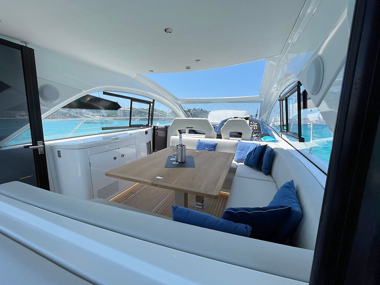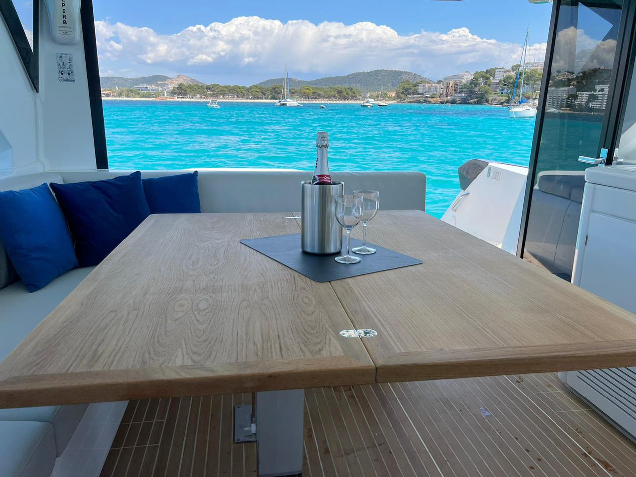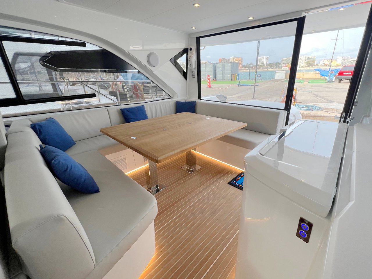 | Outside | 12 V-Anschluss, 220 V-Landanschluss, Badeleiter, Badeplattform, Cockpitdusche warm/kalt, Cockpitpolster, Cockpittisch, Hardtop, Teak im Cockpit, Unterwasserbeleuchtung |