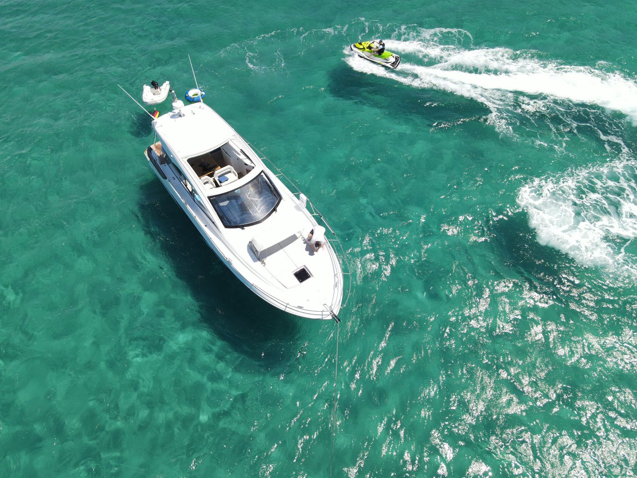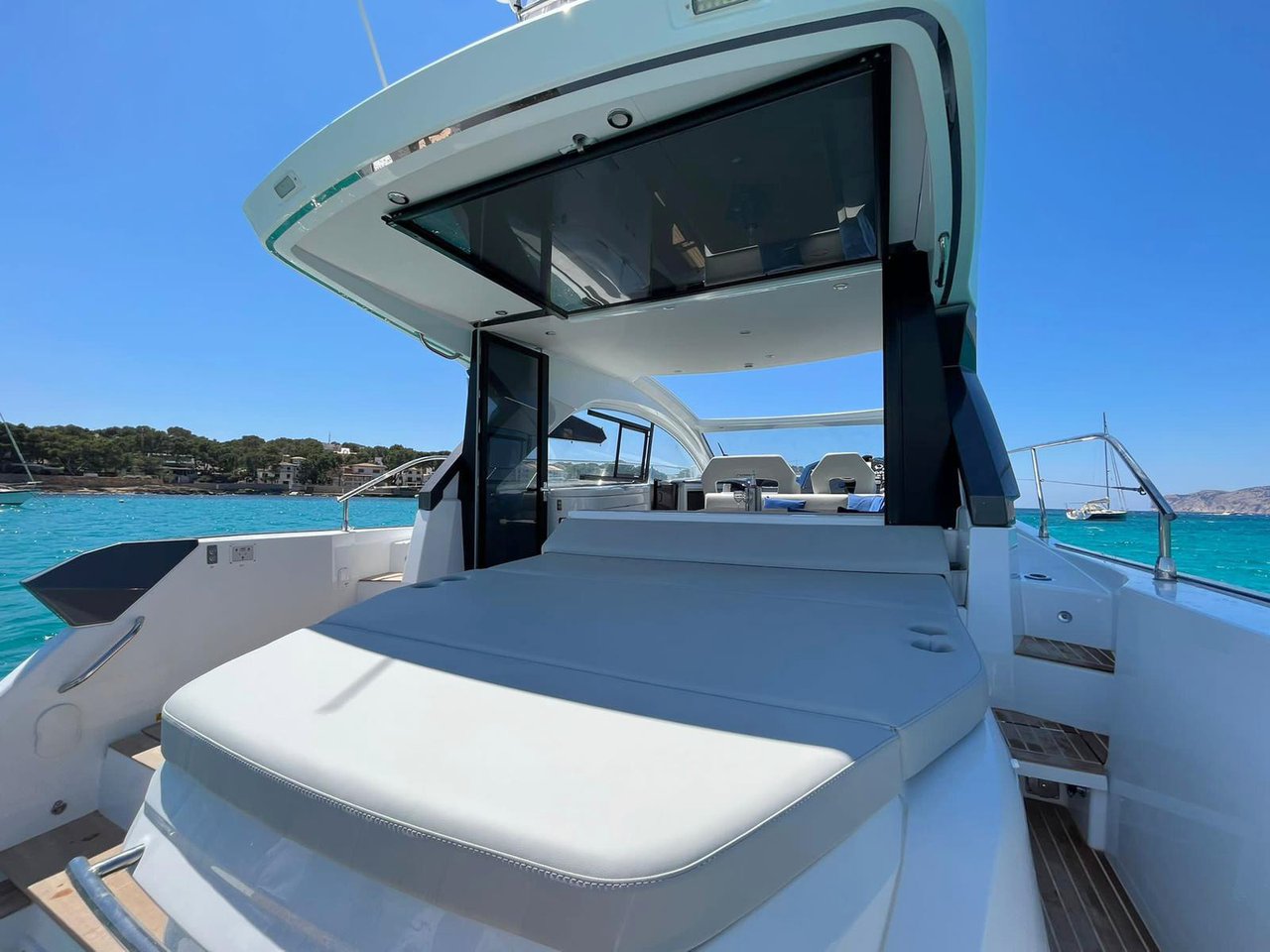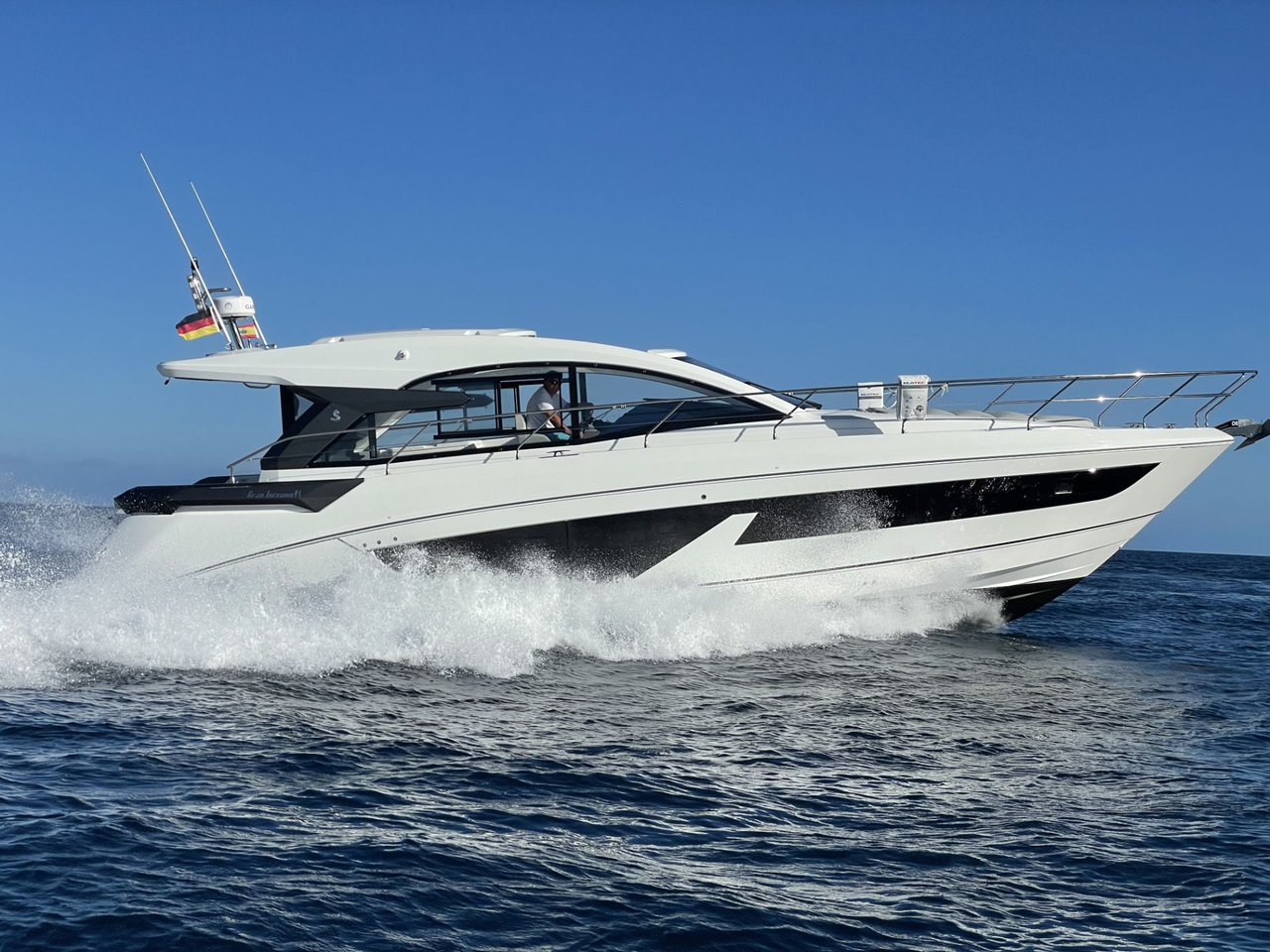 | Outside | 12 V-Anschluss, 220 V-Landanschluss, Badeleiter, Badeplattform, Cockpitdusche warm/kalt, Cockpitpolster, Cockpittisch, Hardtop, Teak im Cockpit, Unterwasserbeleuchtung |
