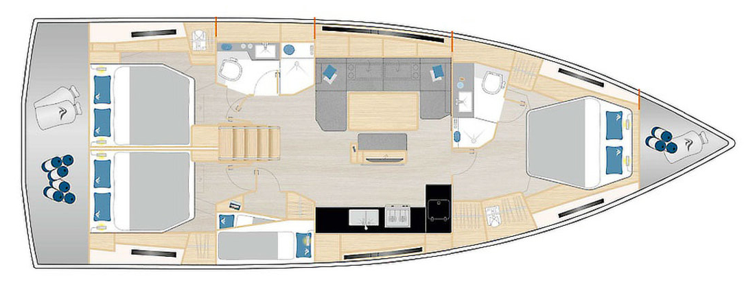 | Kabinen: | 4 | Kojen: | 8+2 |