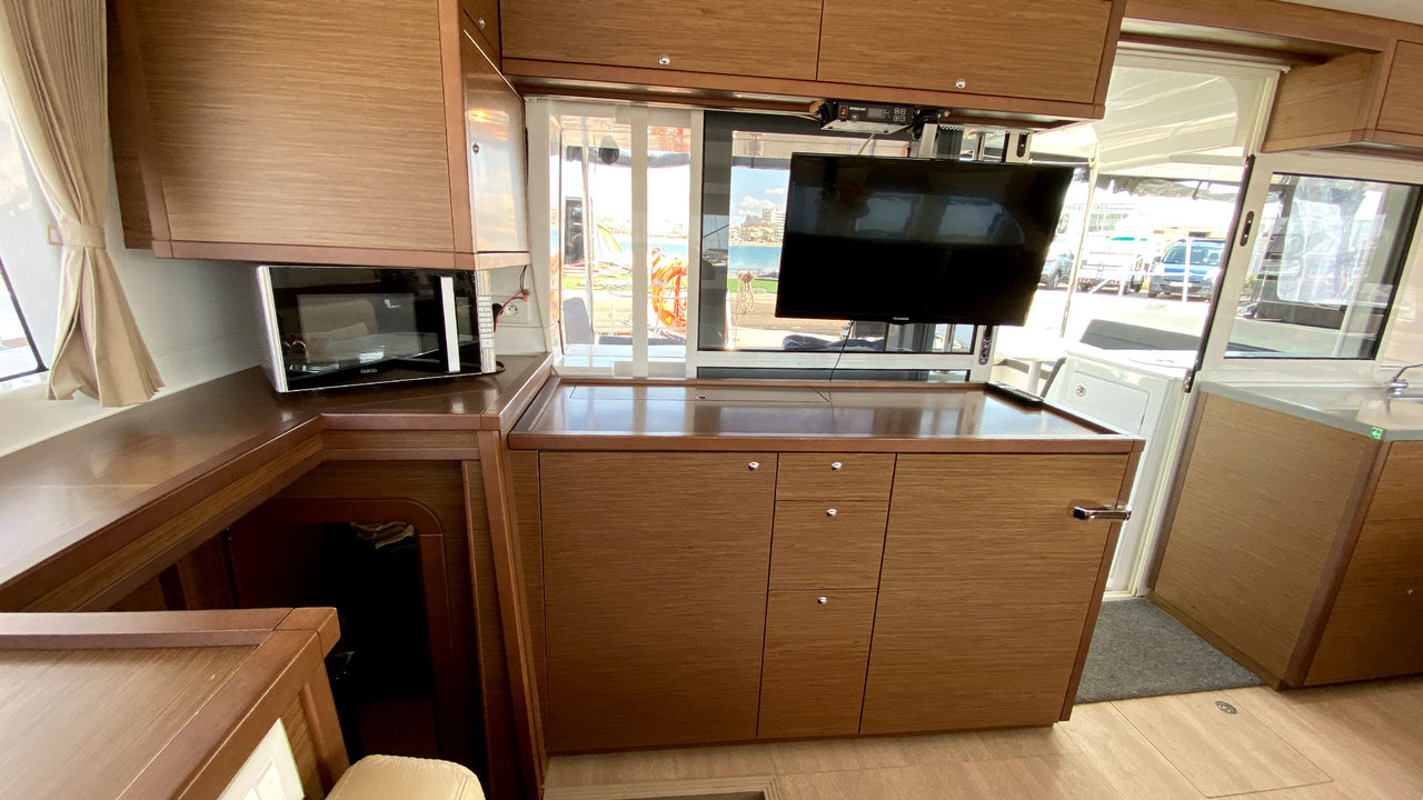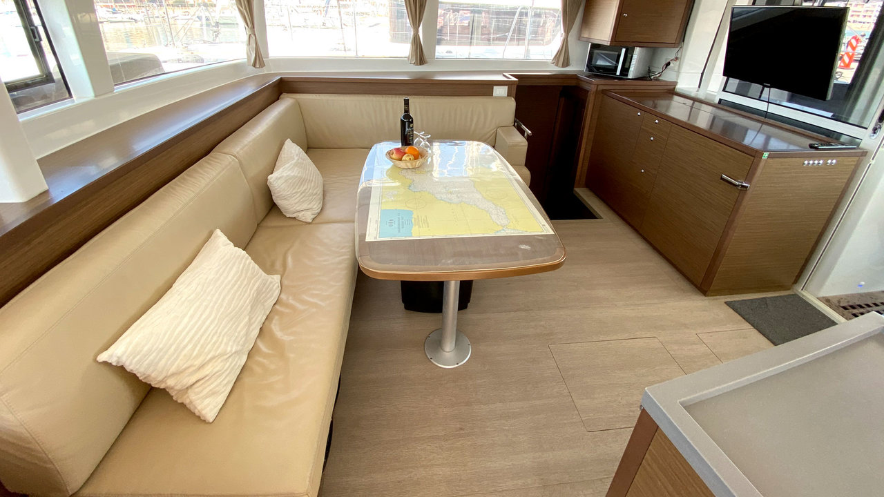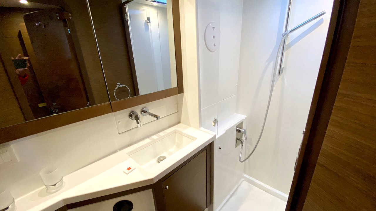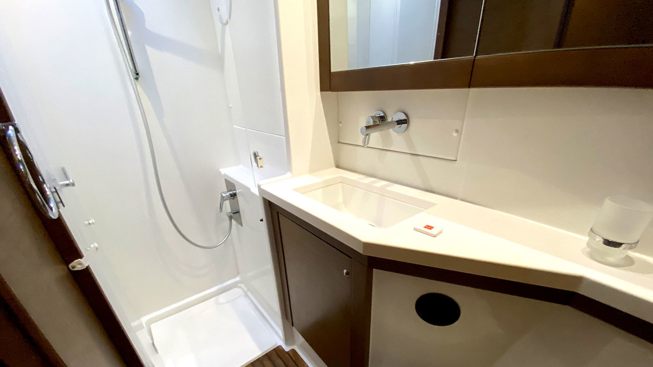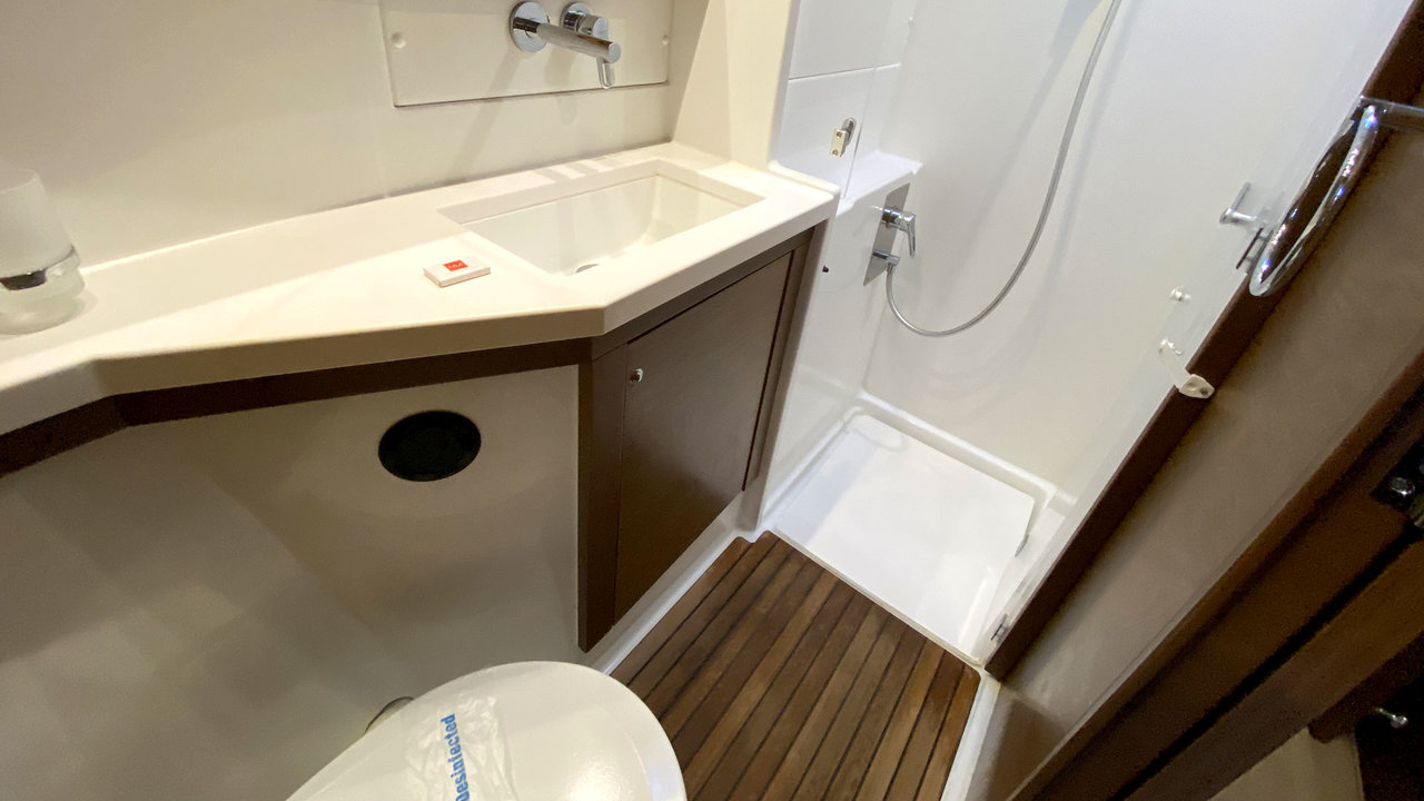 | Outside | 220 V-Landanschluss, Badeleiter, Badeplattform, Biminitop, Cockpitdusche, Cockpitlautsprecher, Cockpitpolster, Cockpittisch, Davits, Deckpolster, elektr. Ankerwinsch, elektr. Winsch, Solaranlage, Sprayhood, Teak im Cockpit |